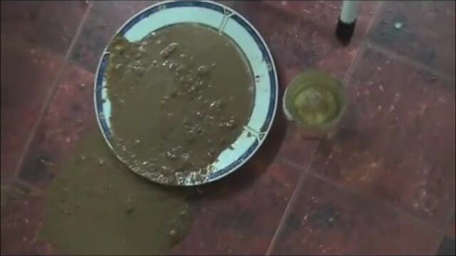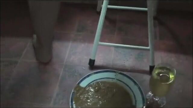 Elena shitting diarrhea in a plate