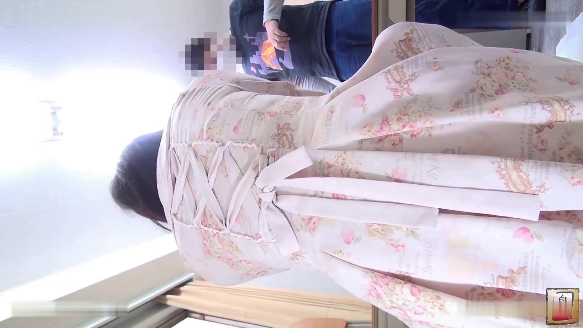 pink dress woman pooping in cube