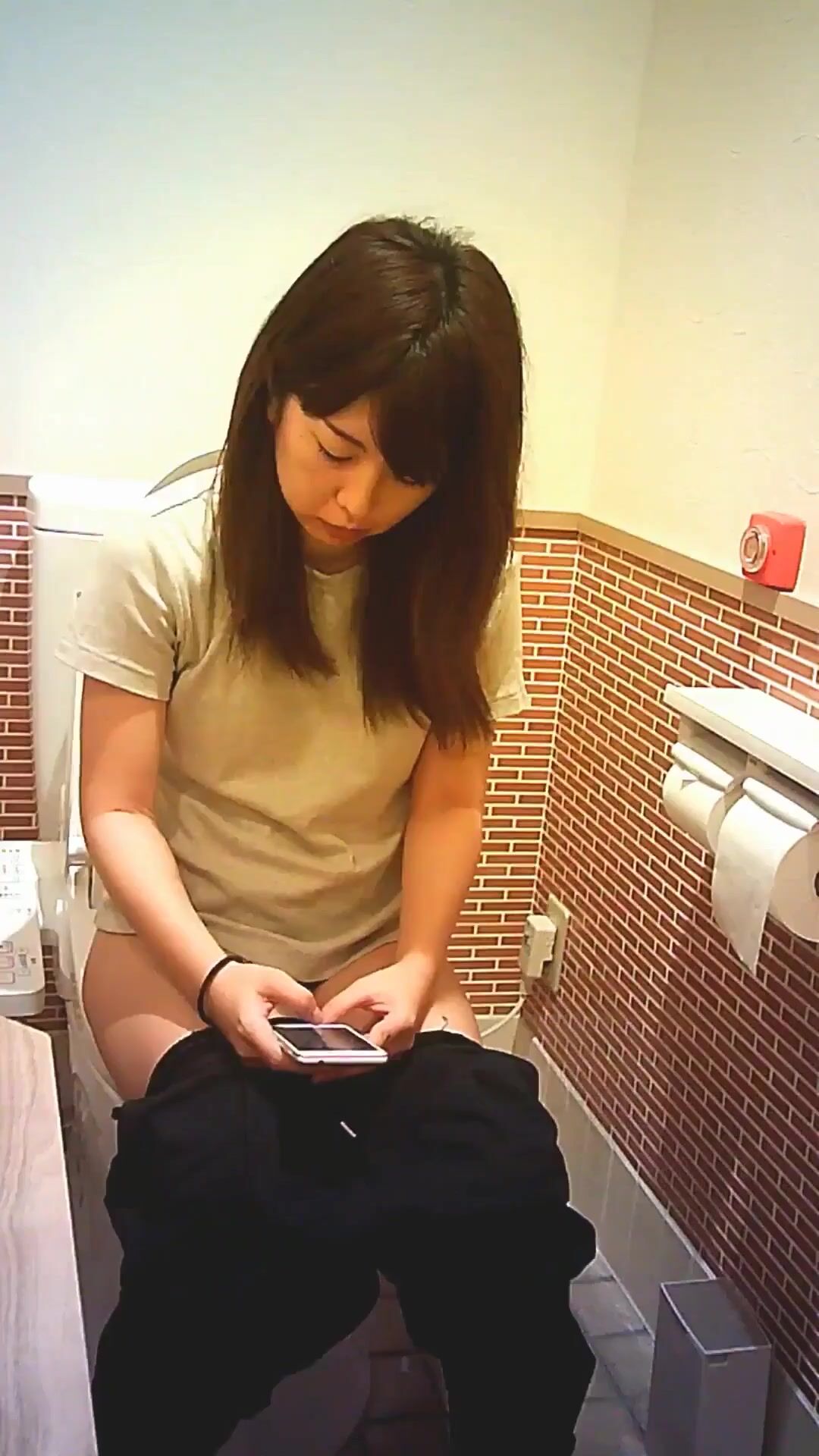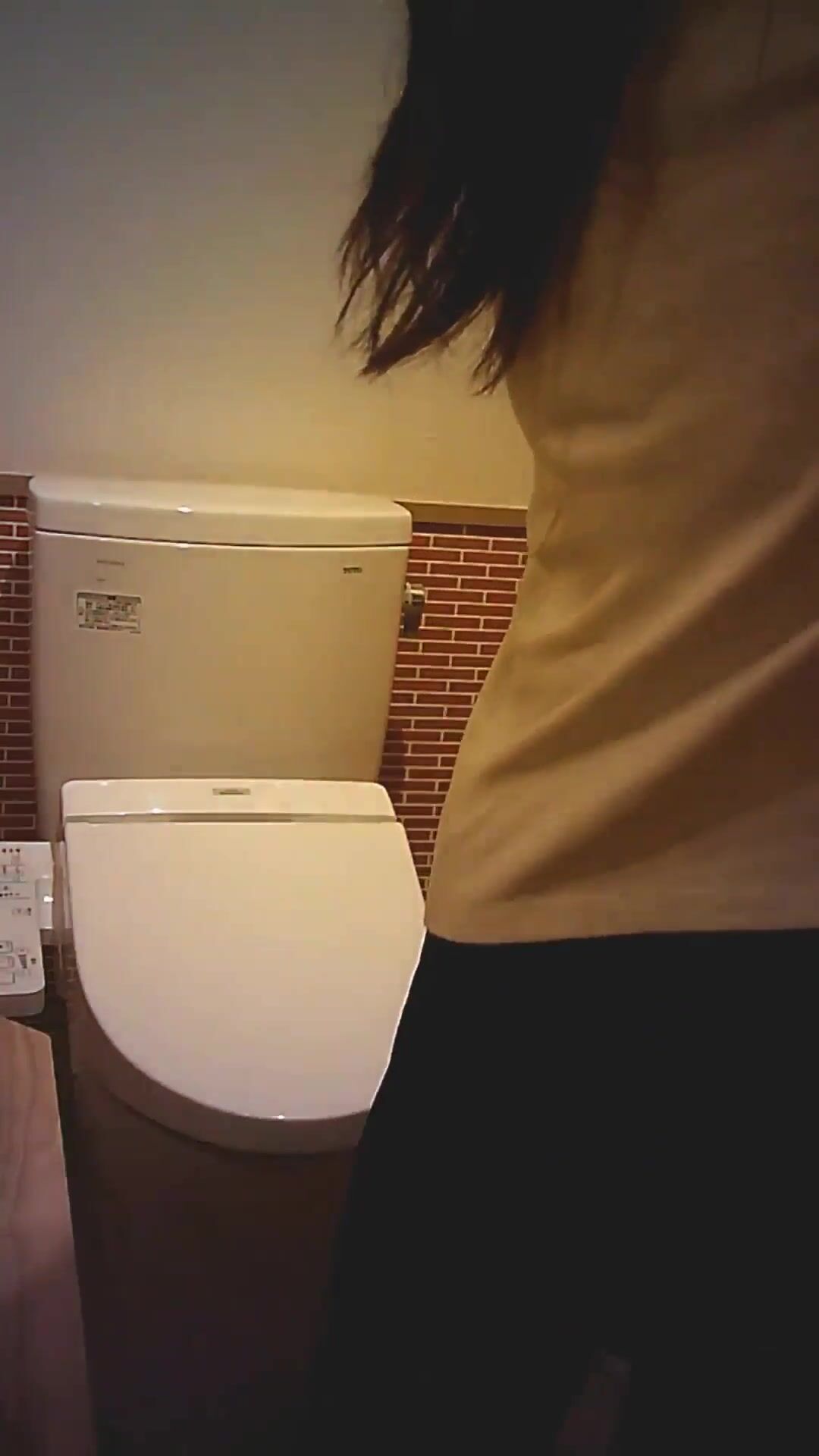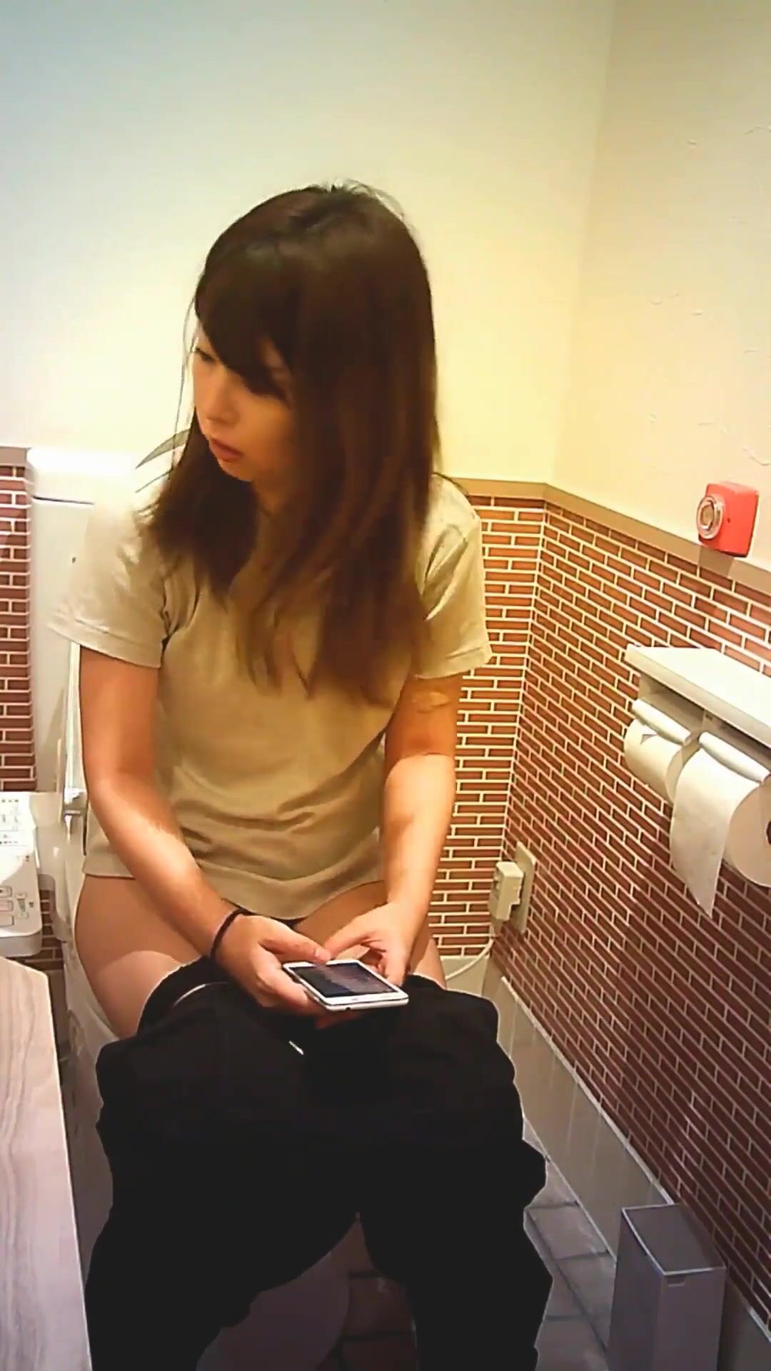 Asian woman taking a shit in restroom - video 2