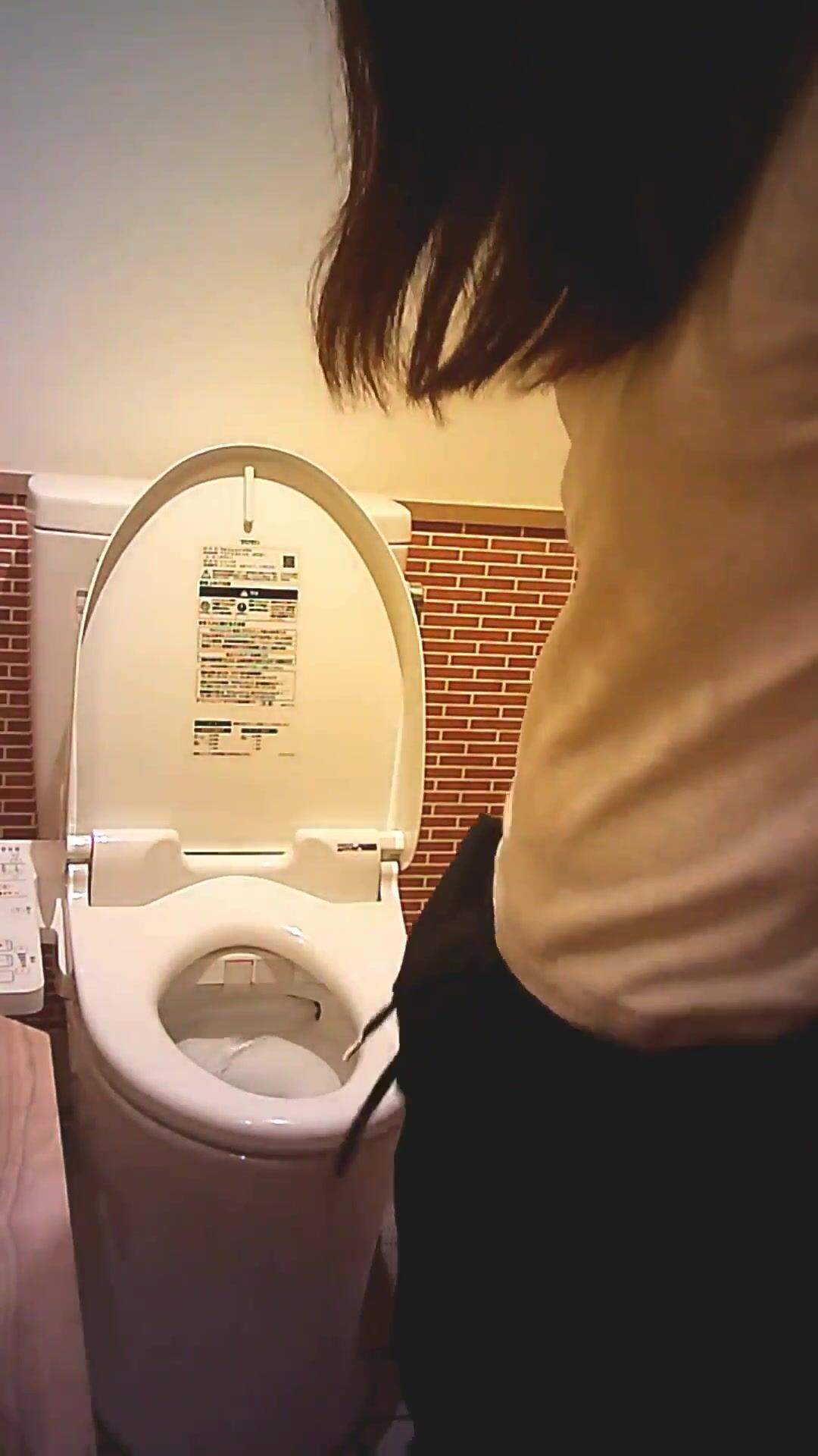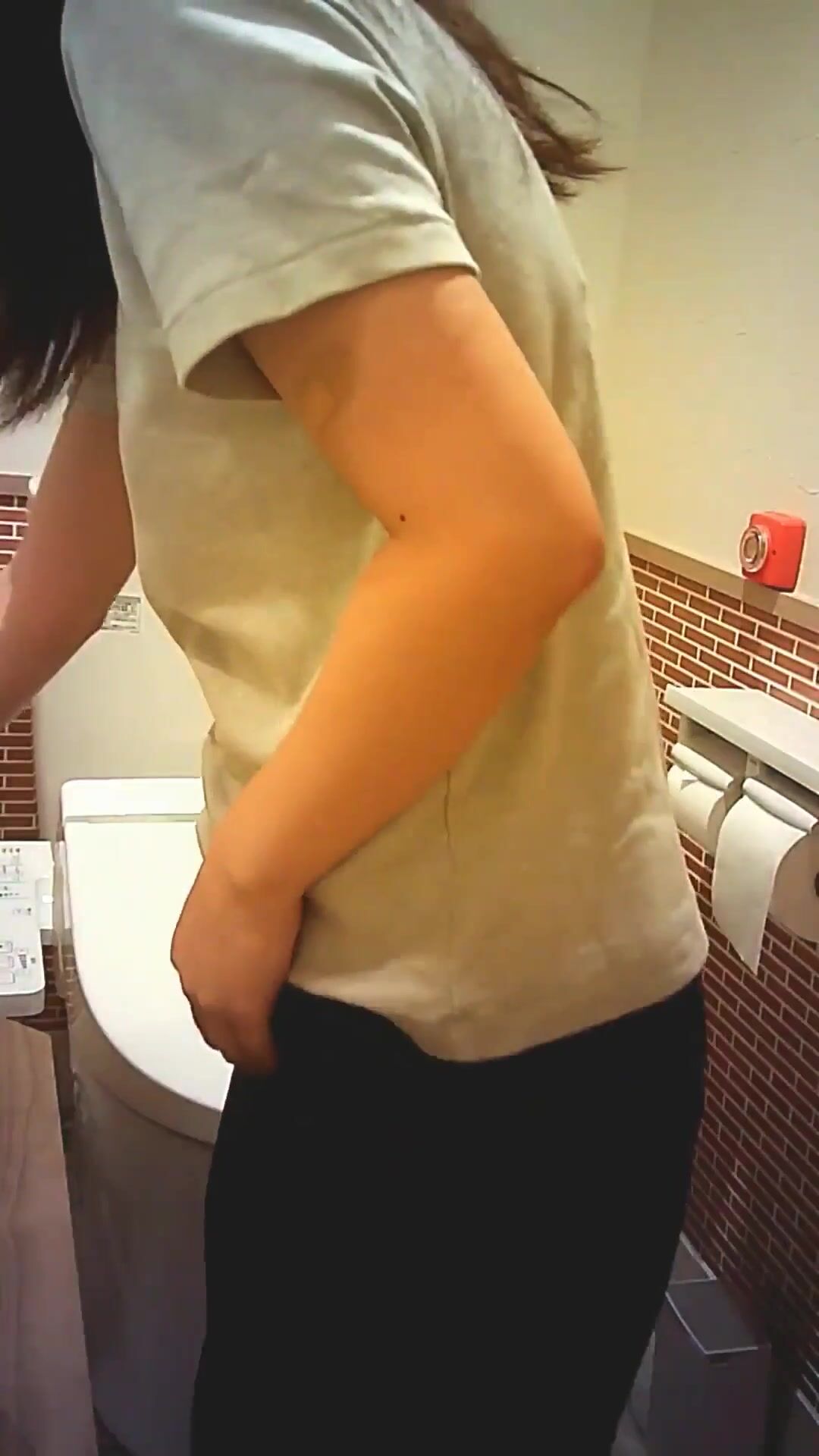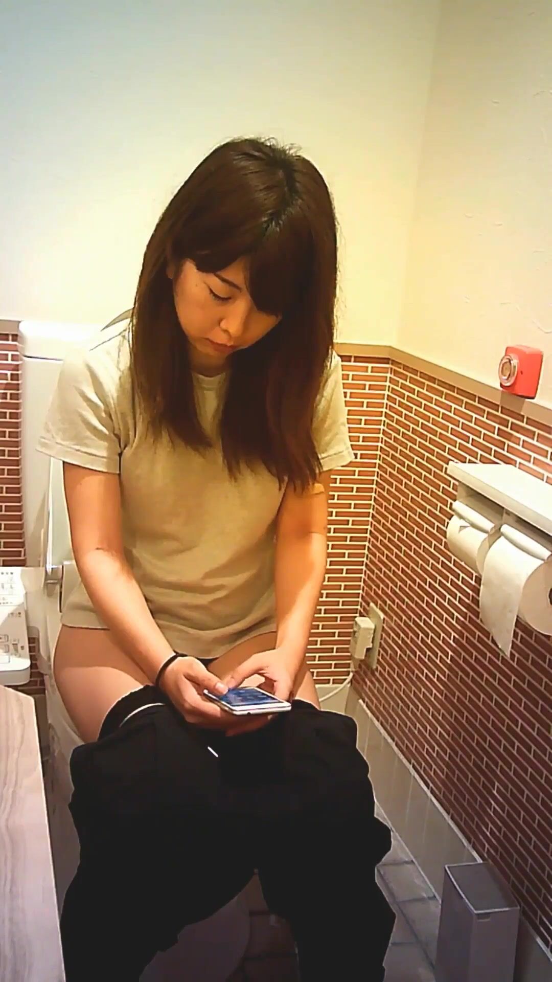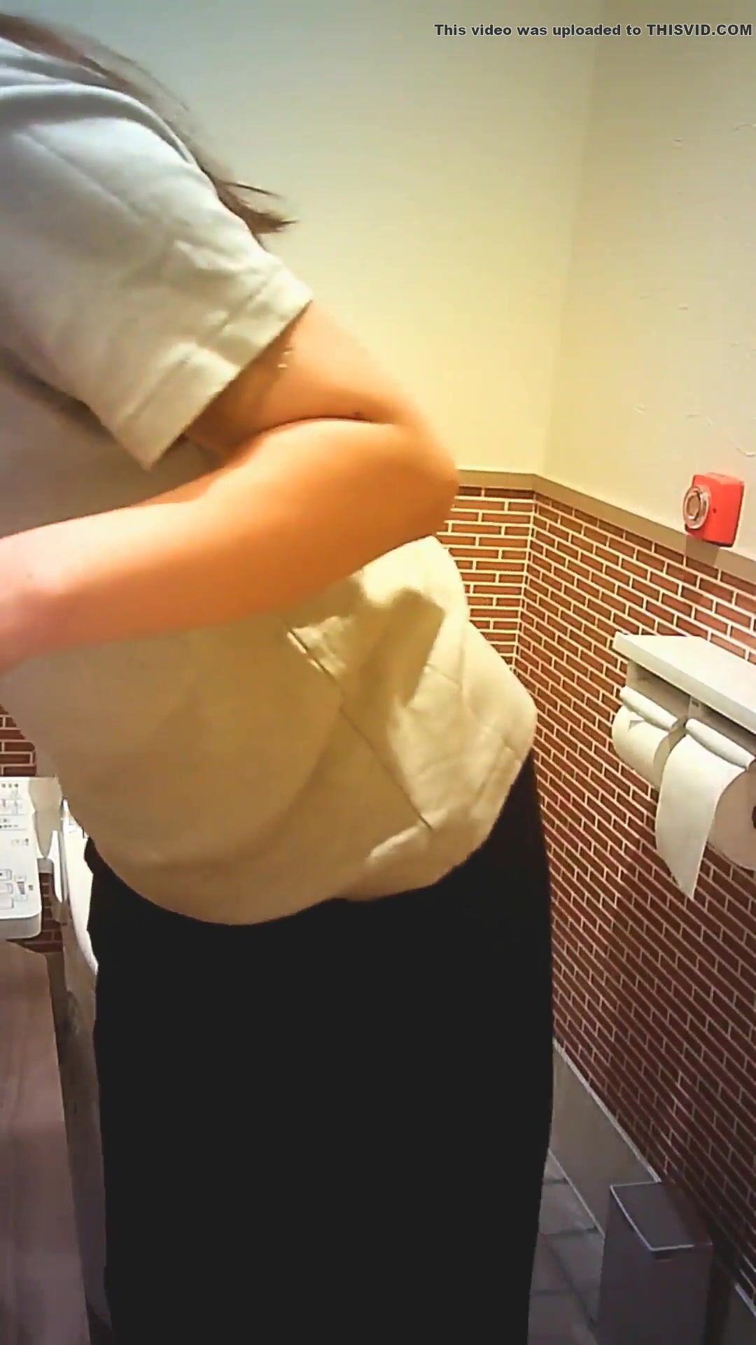 Asian woman taking a shit in restroom - video 2