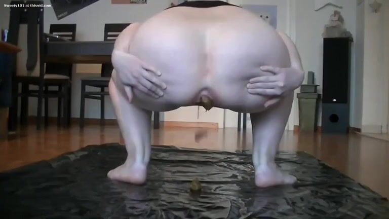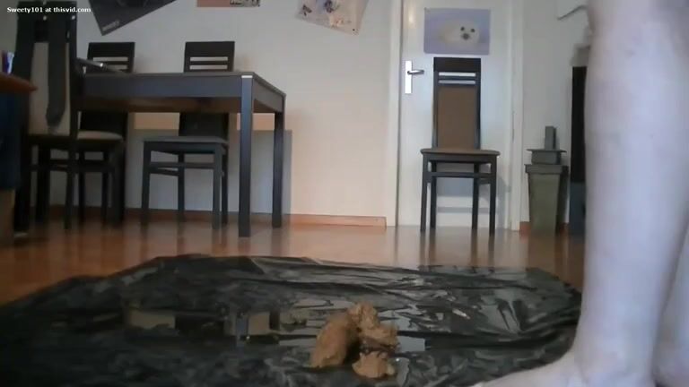 Horny girl shits on plastic