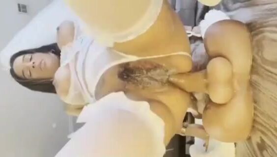 Girl in a bride outfit pisses and shits herself on a di