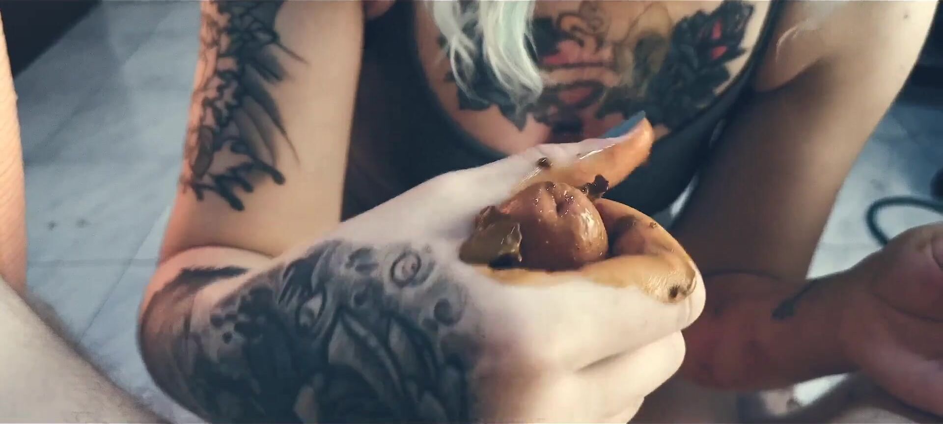 Girl shitting in the shower and smering it on body