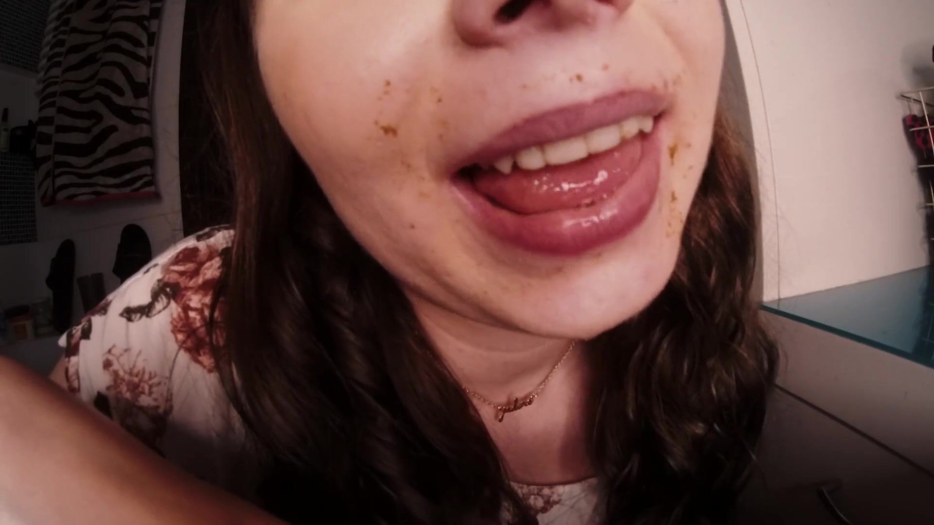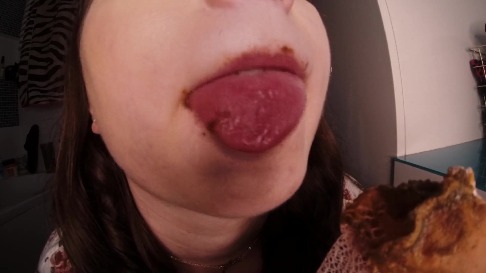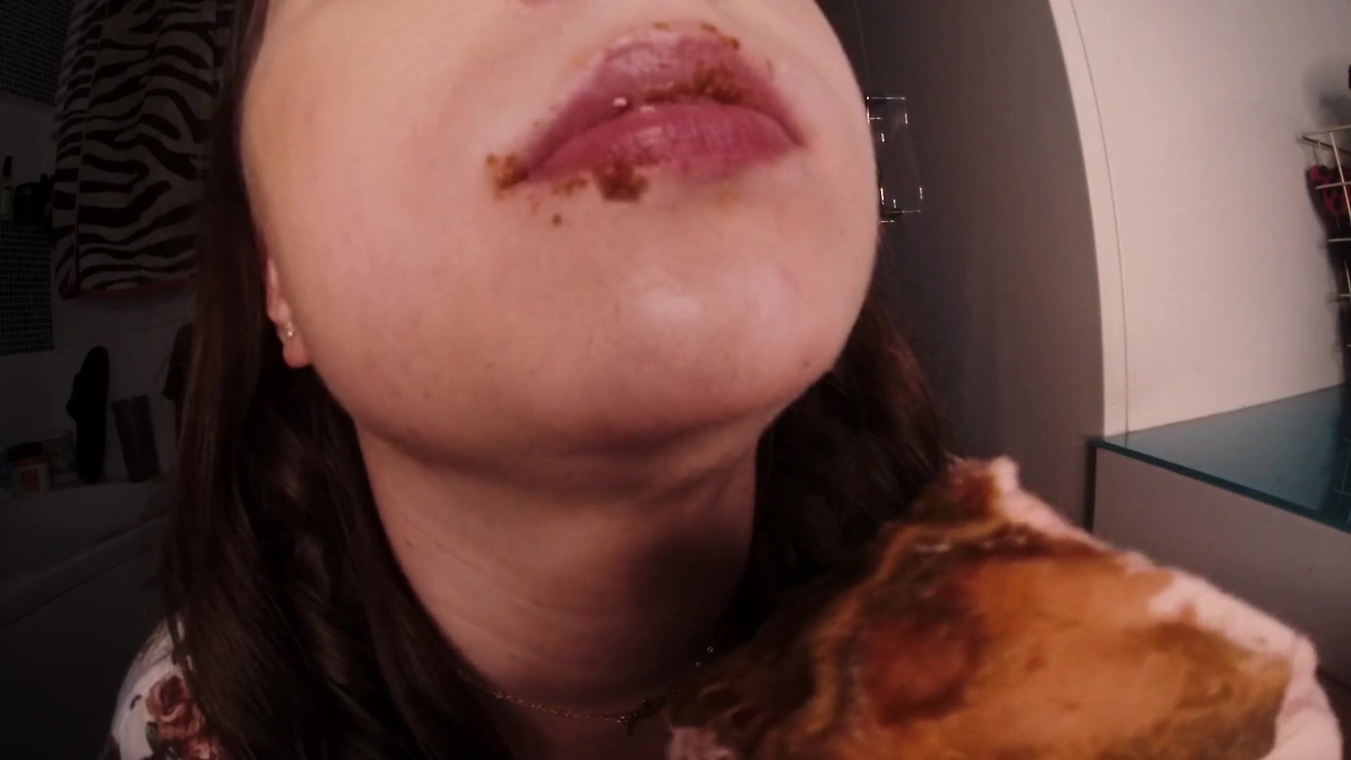 slut chews shitty panties close up