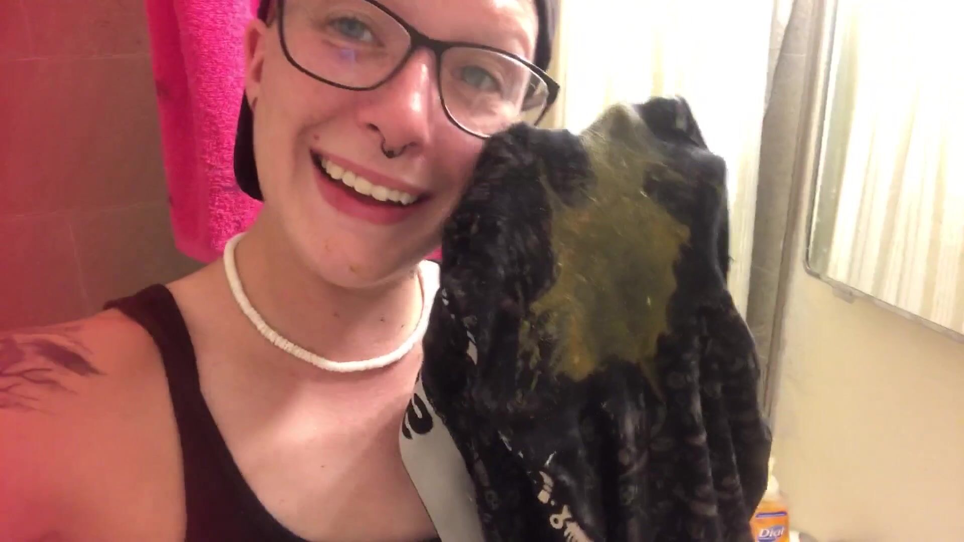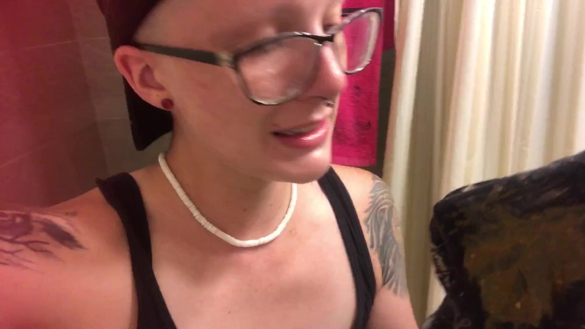 Pierced nerd licks shitty panties