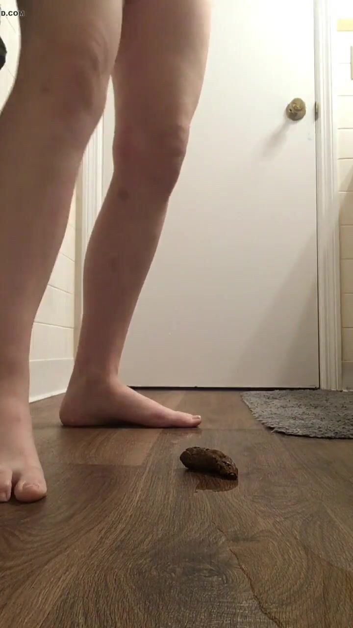 Girl open wide legs and shitting on the toilet floor