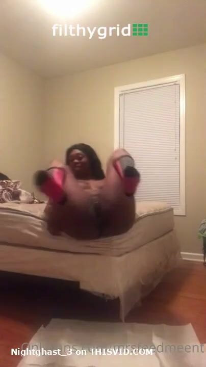 Sexy ebony taking soft pile of shit off the bed