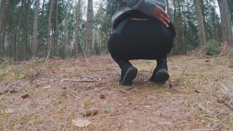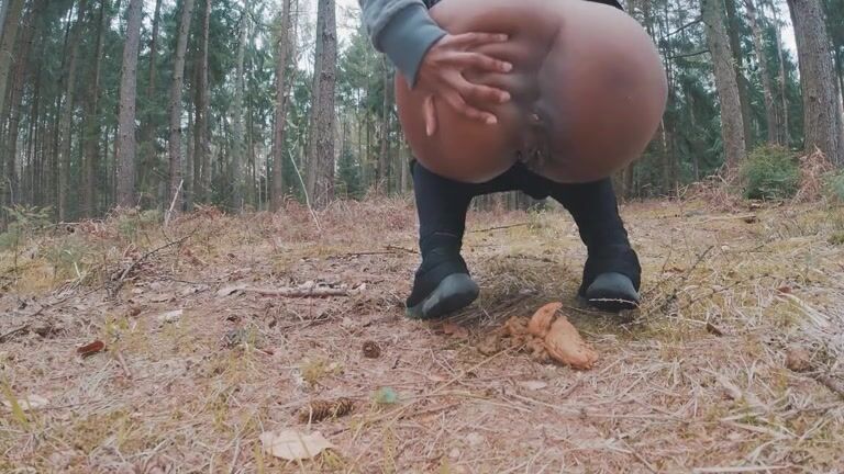Ebony girl shitting in the forest