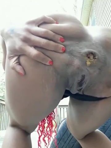 Black booty dropping nice logs outside