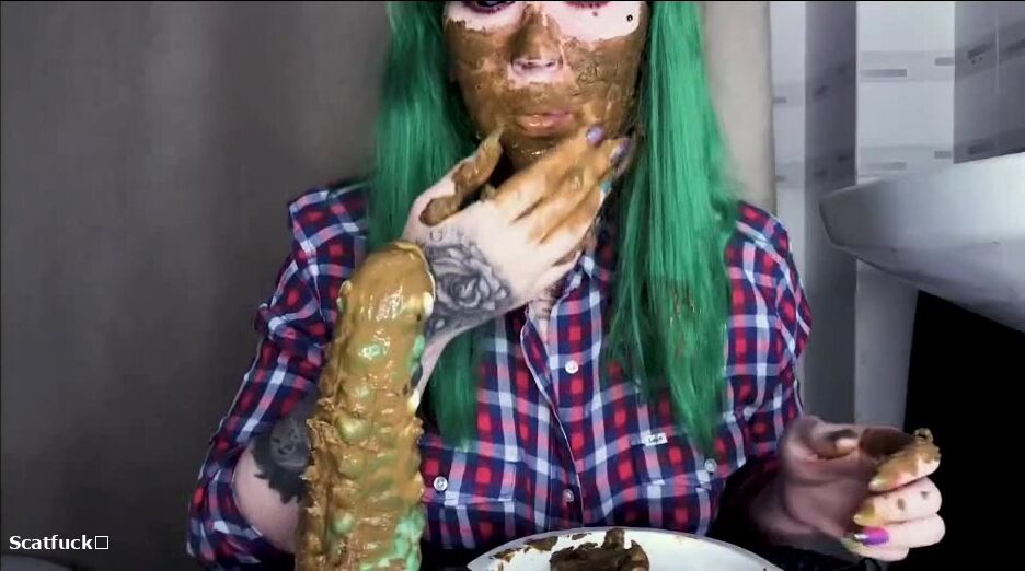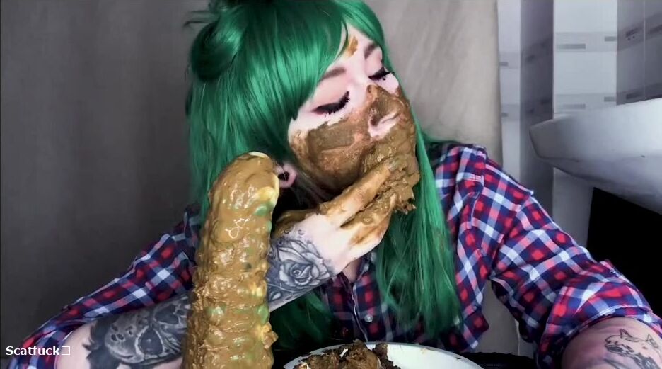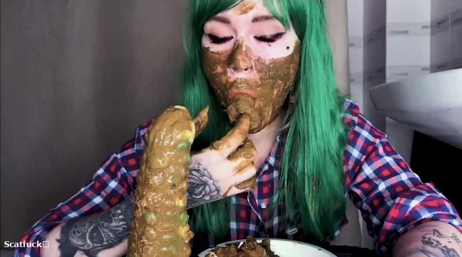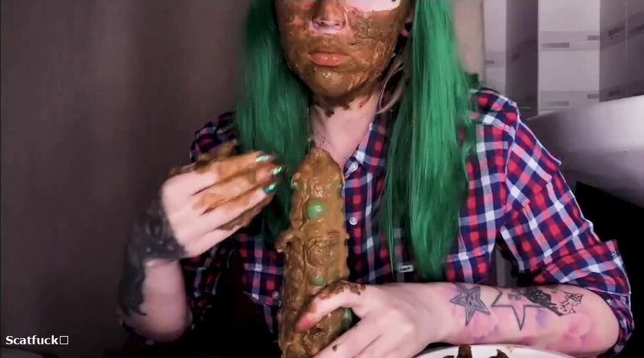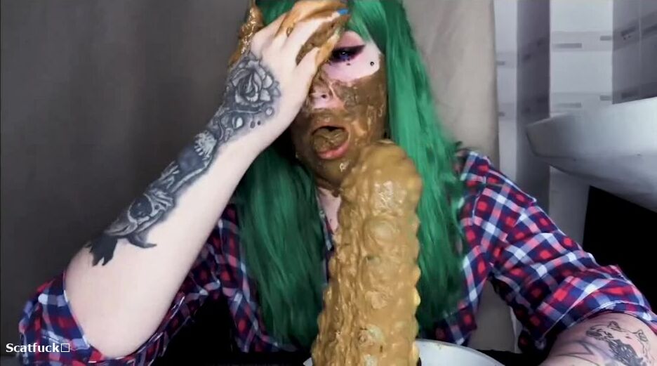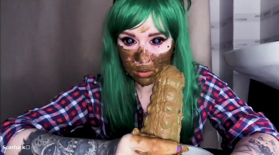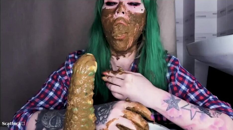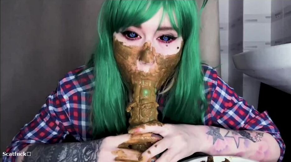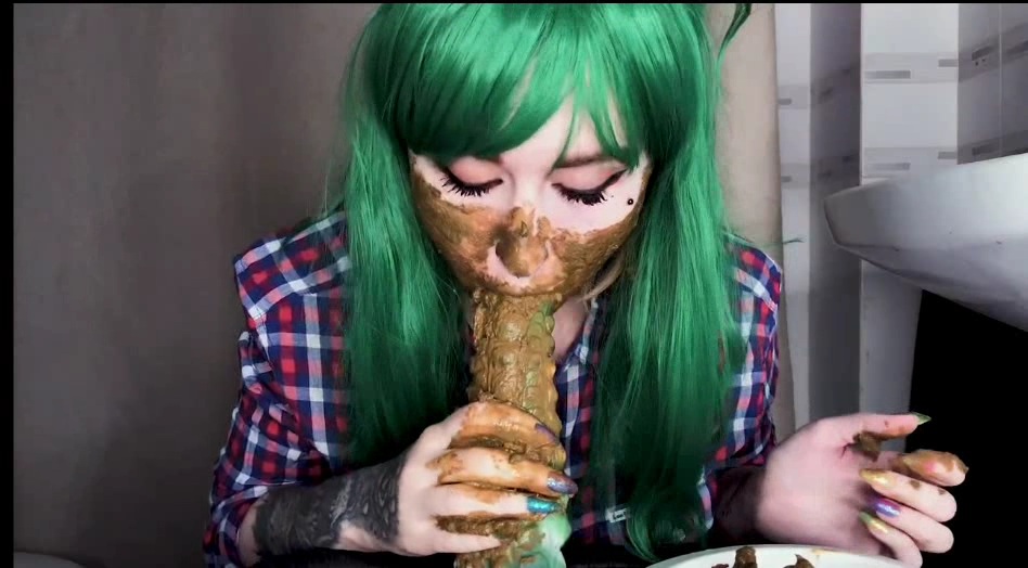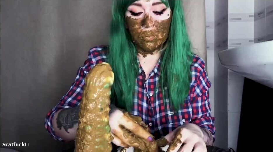 Green hair green dildo and shit