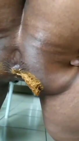 Thick ebony squeezing a creamy poop out