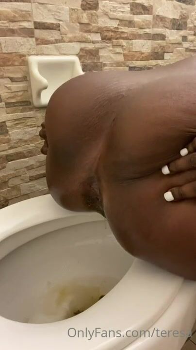 Girl open wide legs and shitting on the toilet floor