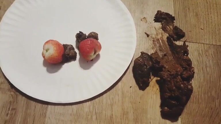 Lucky slave eating his mistress shit as breakfast