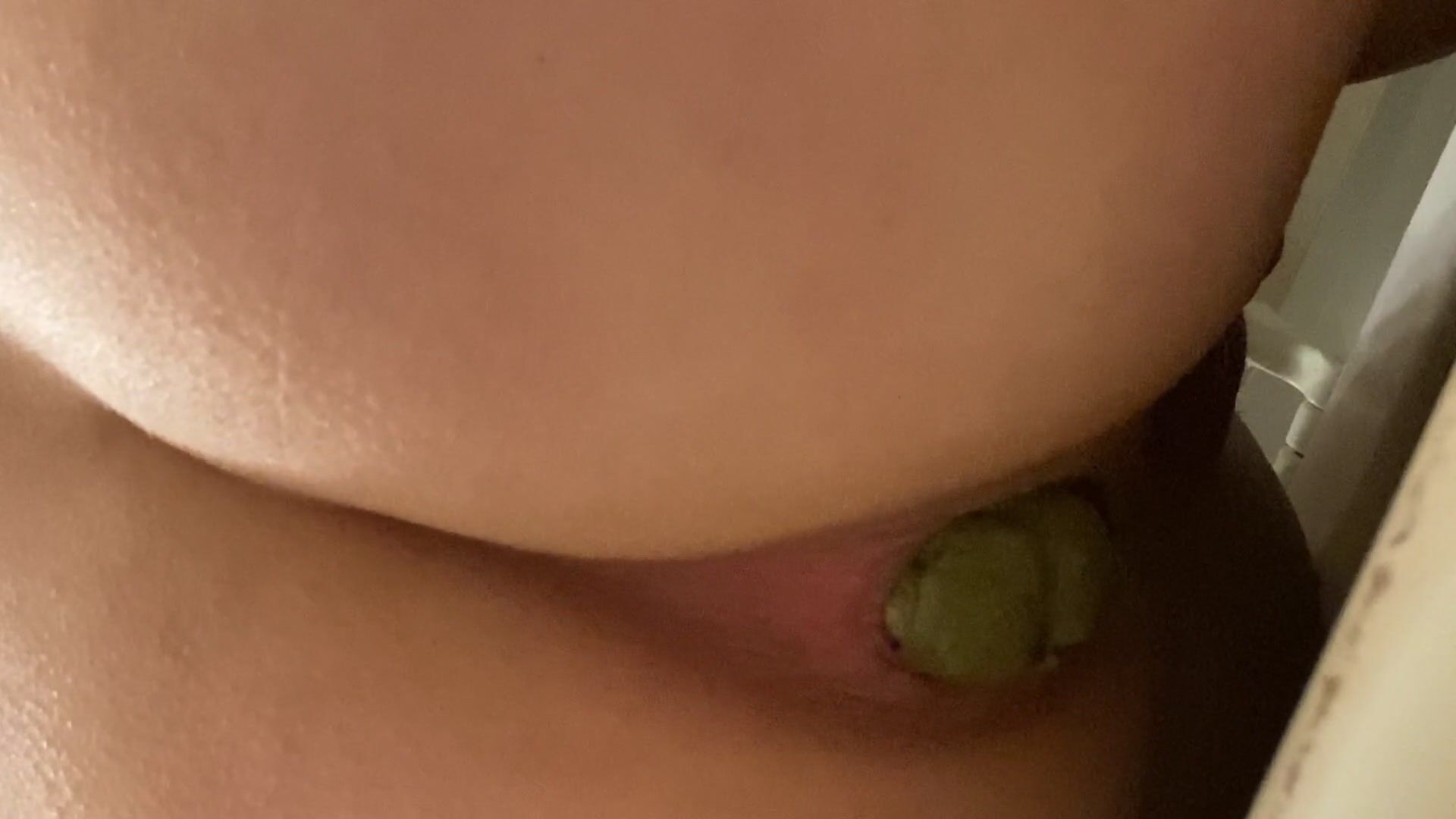 Woman on her side births huge turd.
