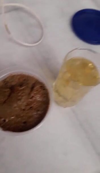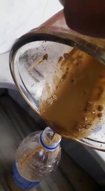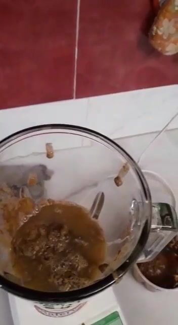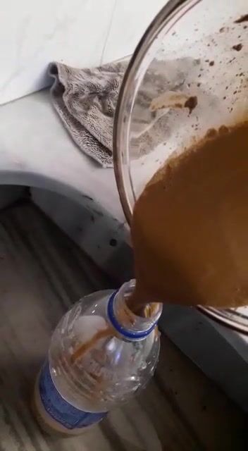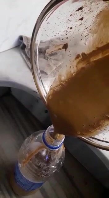 Girl making scat and piss cocktail