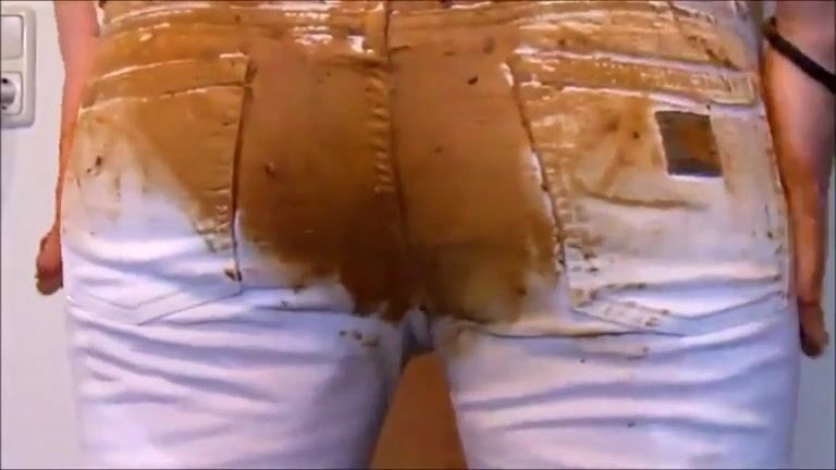 Girl shitting in white jeans