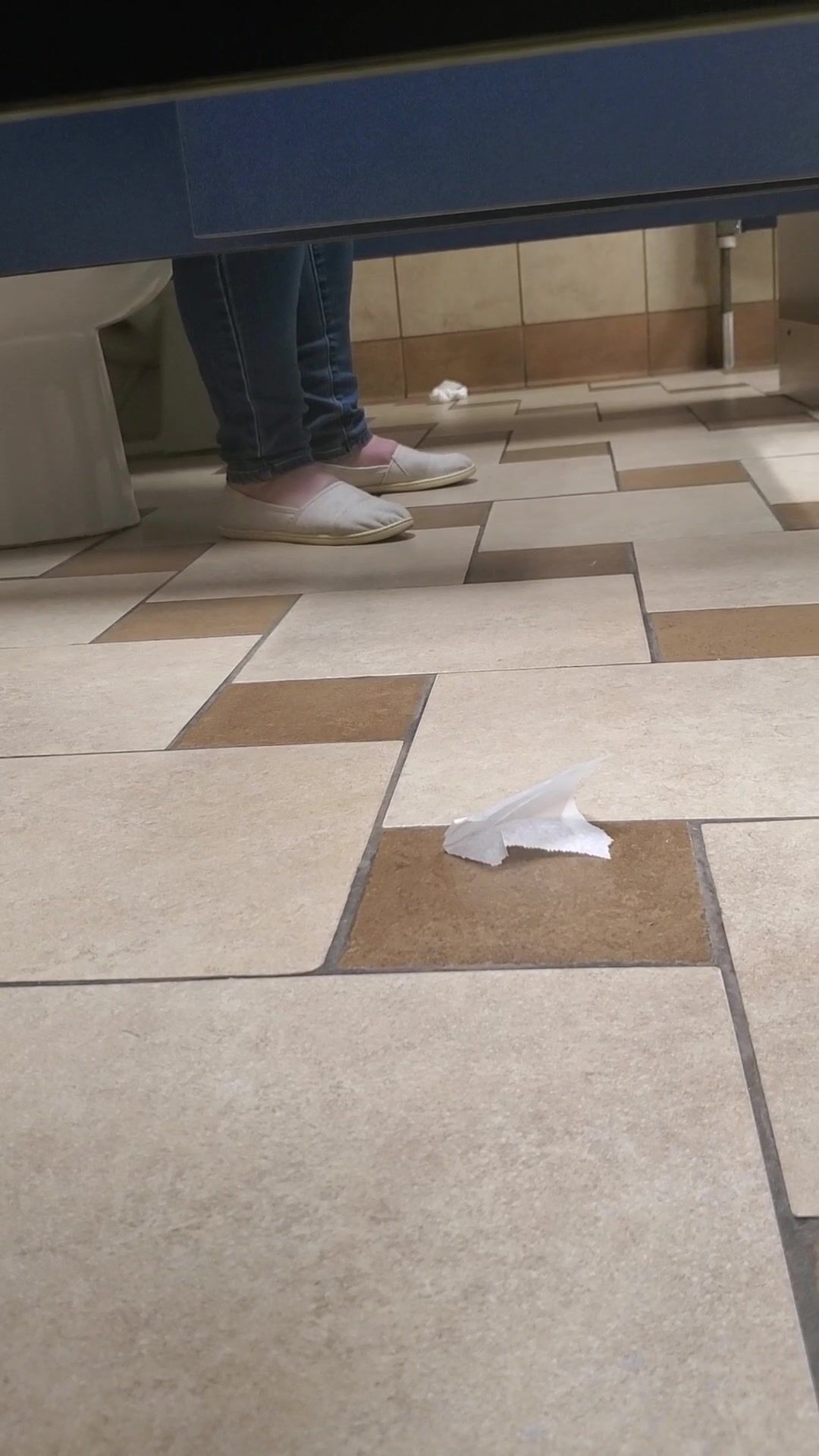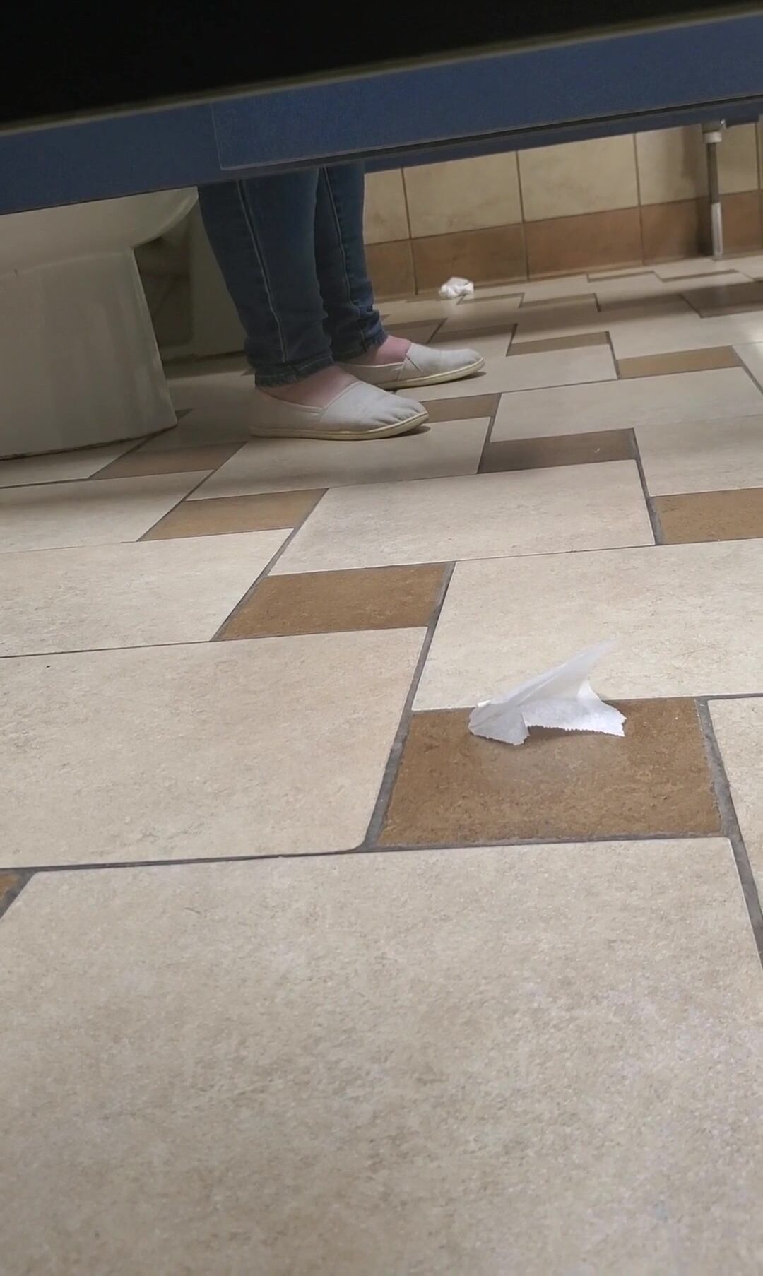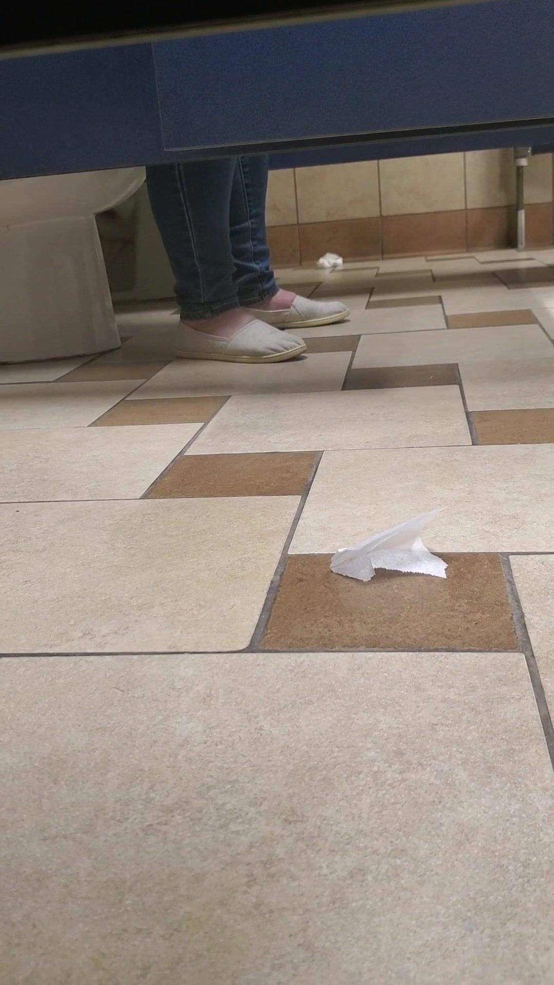 Girl open wide legs and shitting on the toilet floor