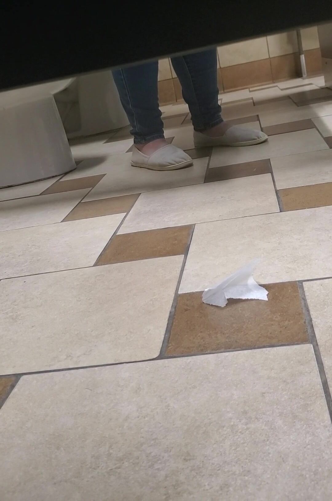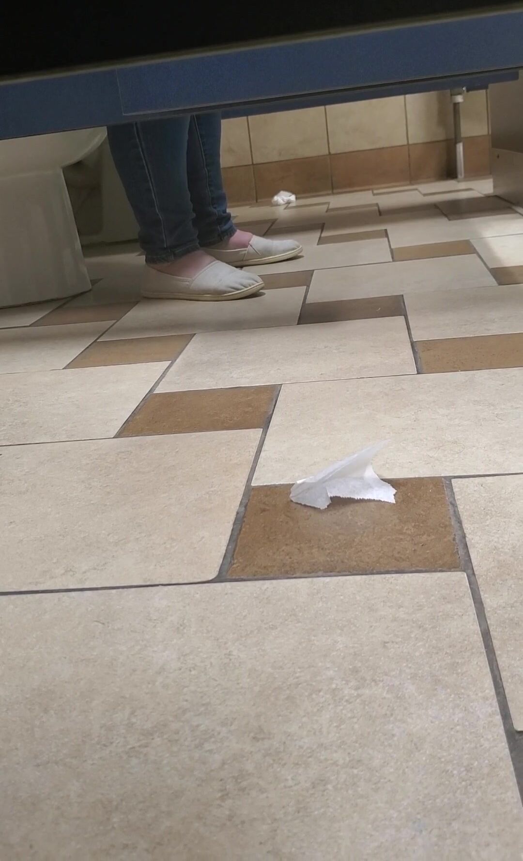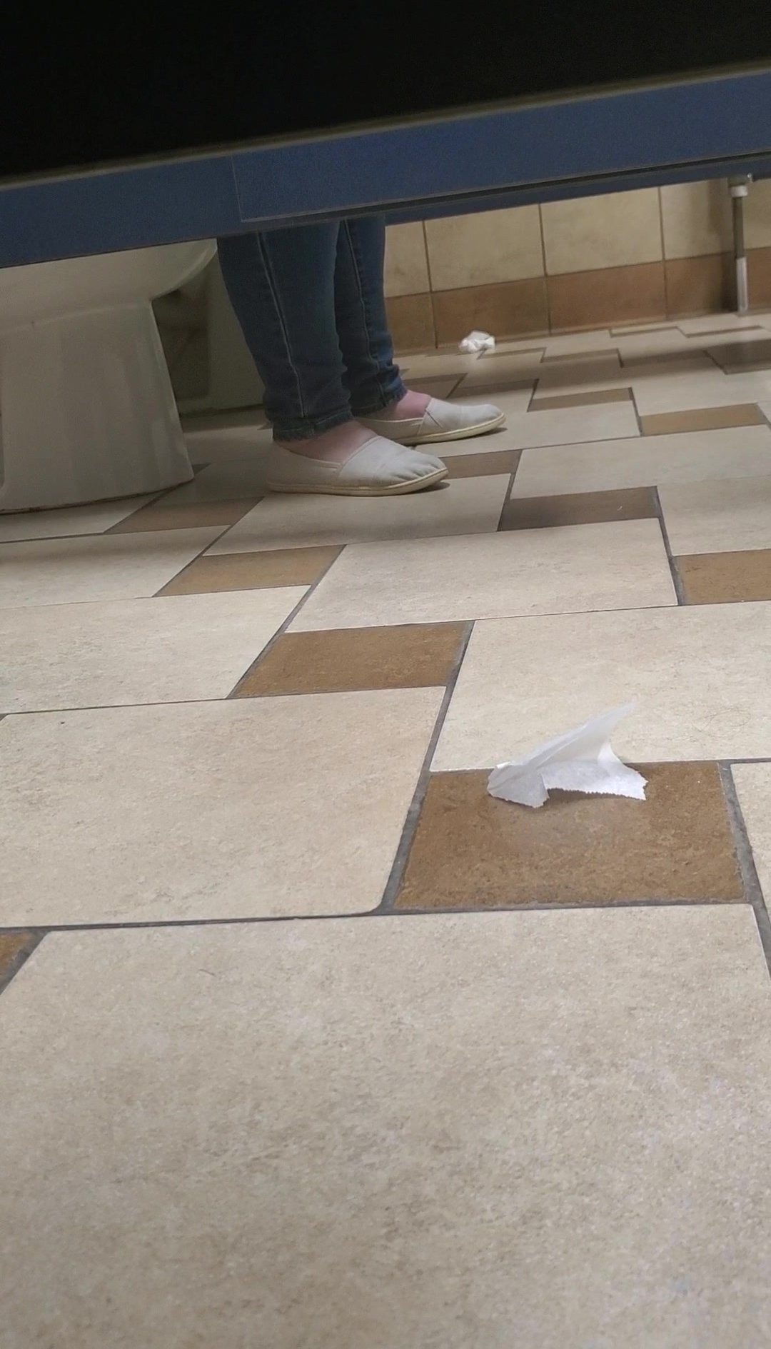 Girl open wide legs and shitting on the toilet floor