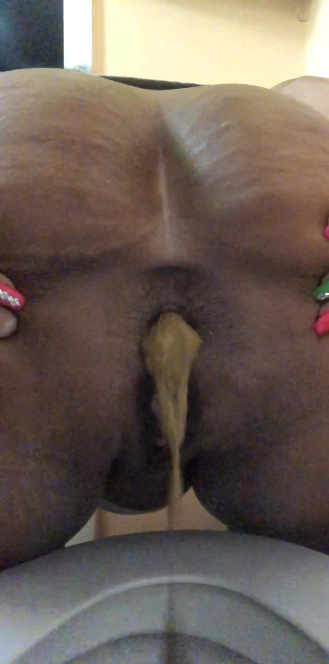Girl open wide legs and shitting on the toilet floor