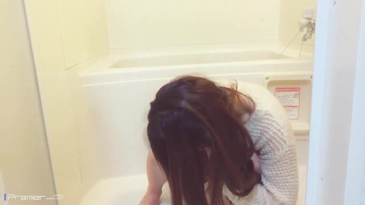 Girl open wide legs and shitting on the toilet floor