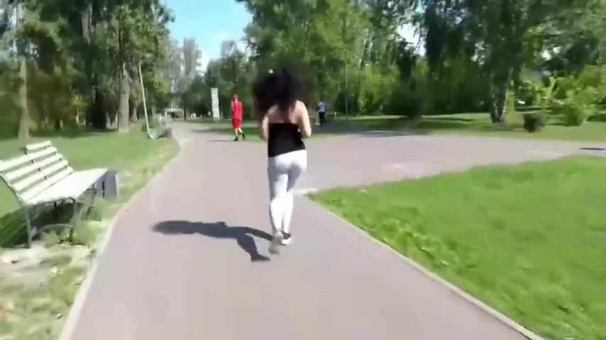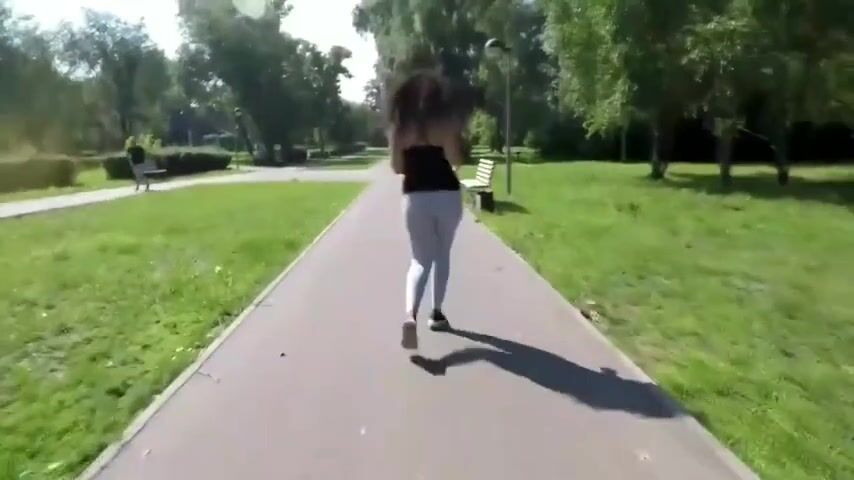 Russian babe leggings poop in a park