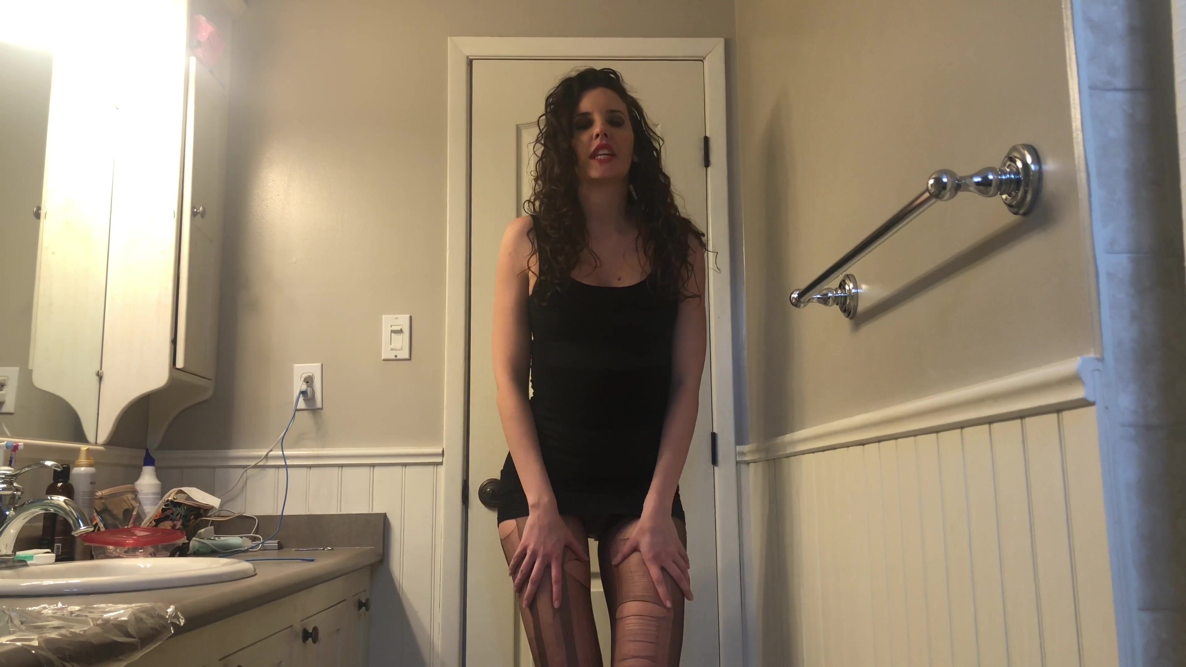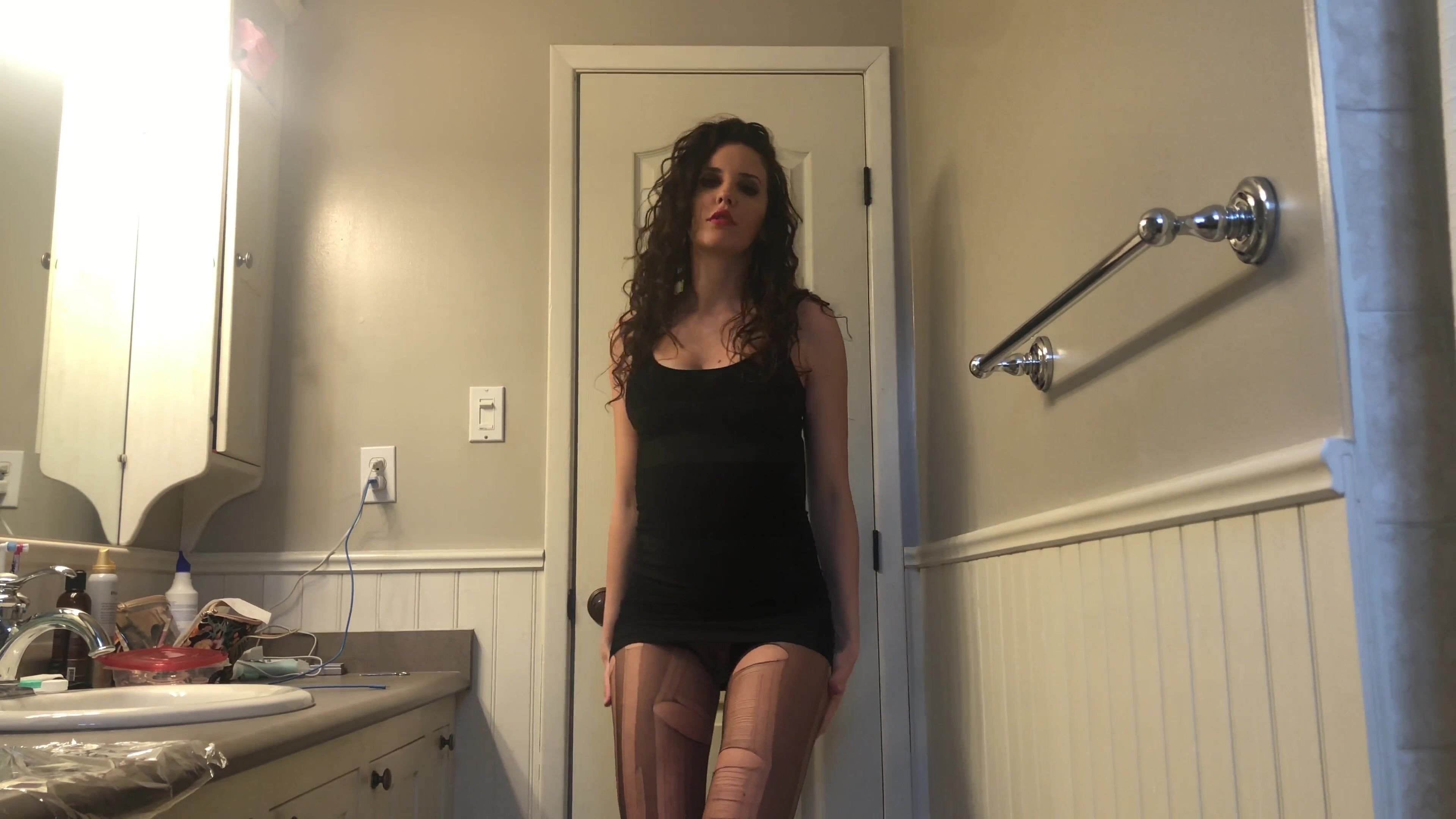 Cut babe in ripped stockings shits