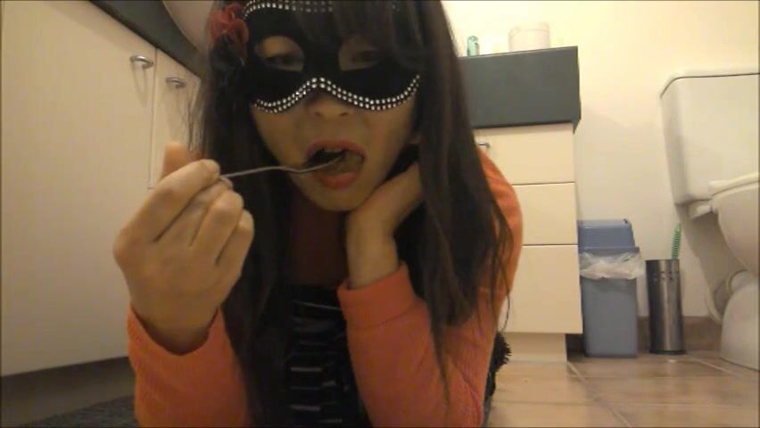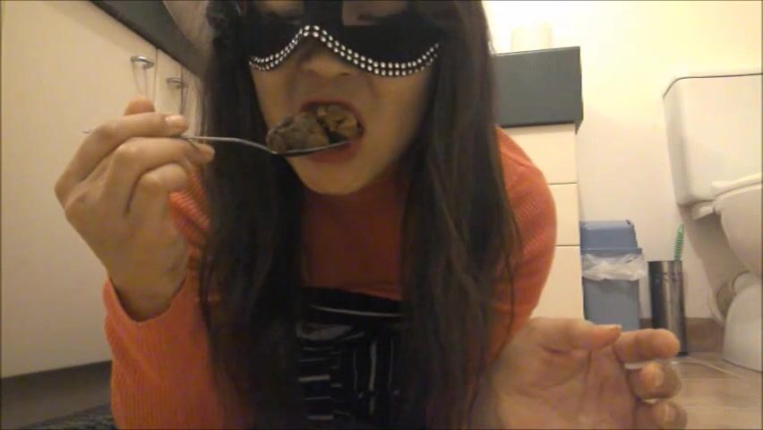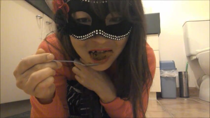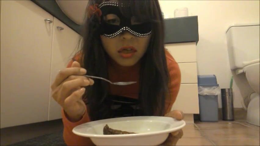 Japanese scat slut is improving her swallowing skills