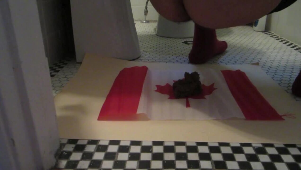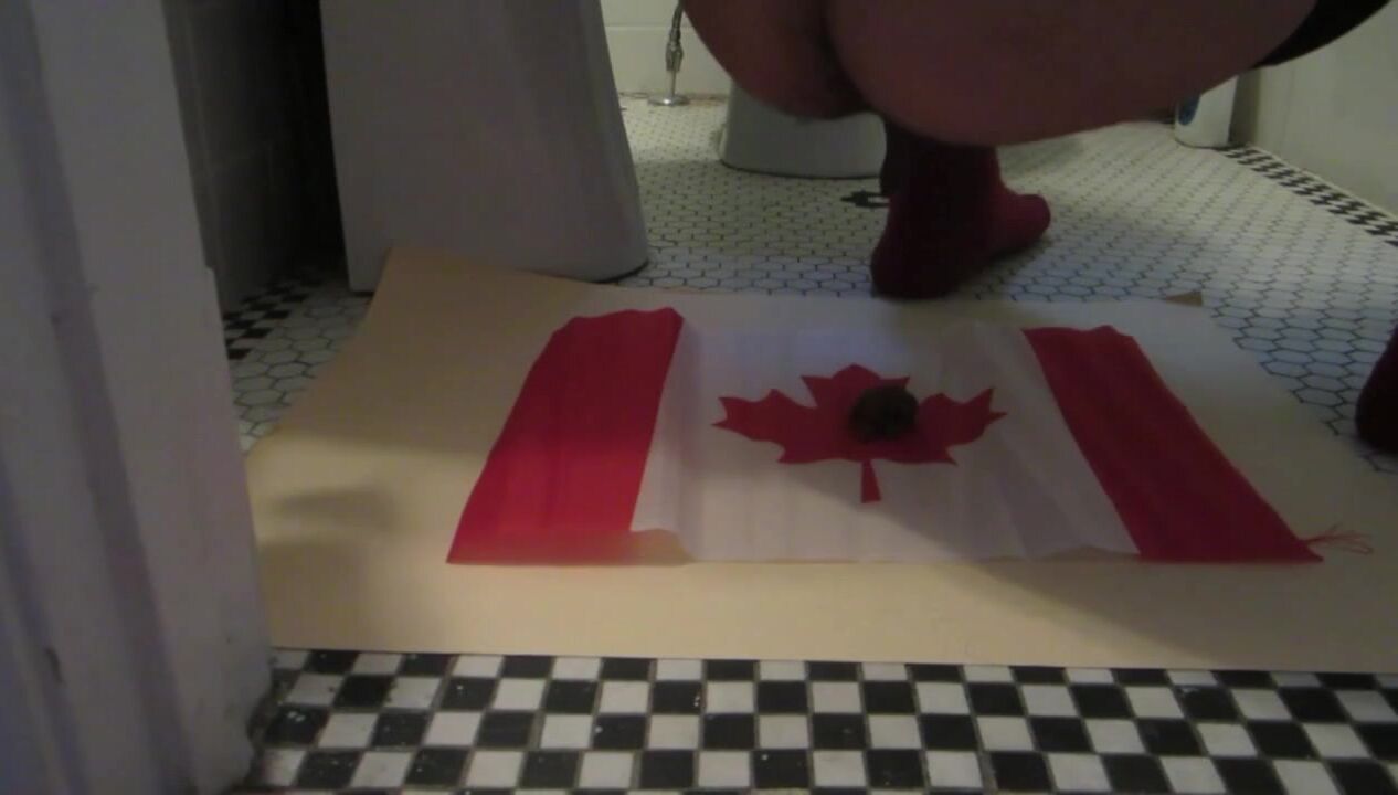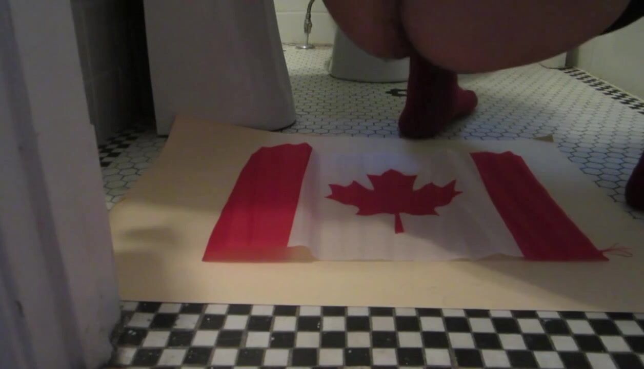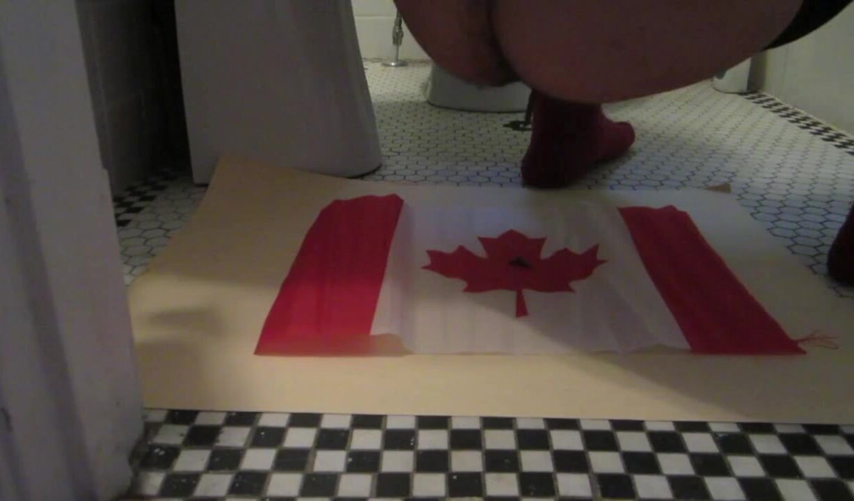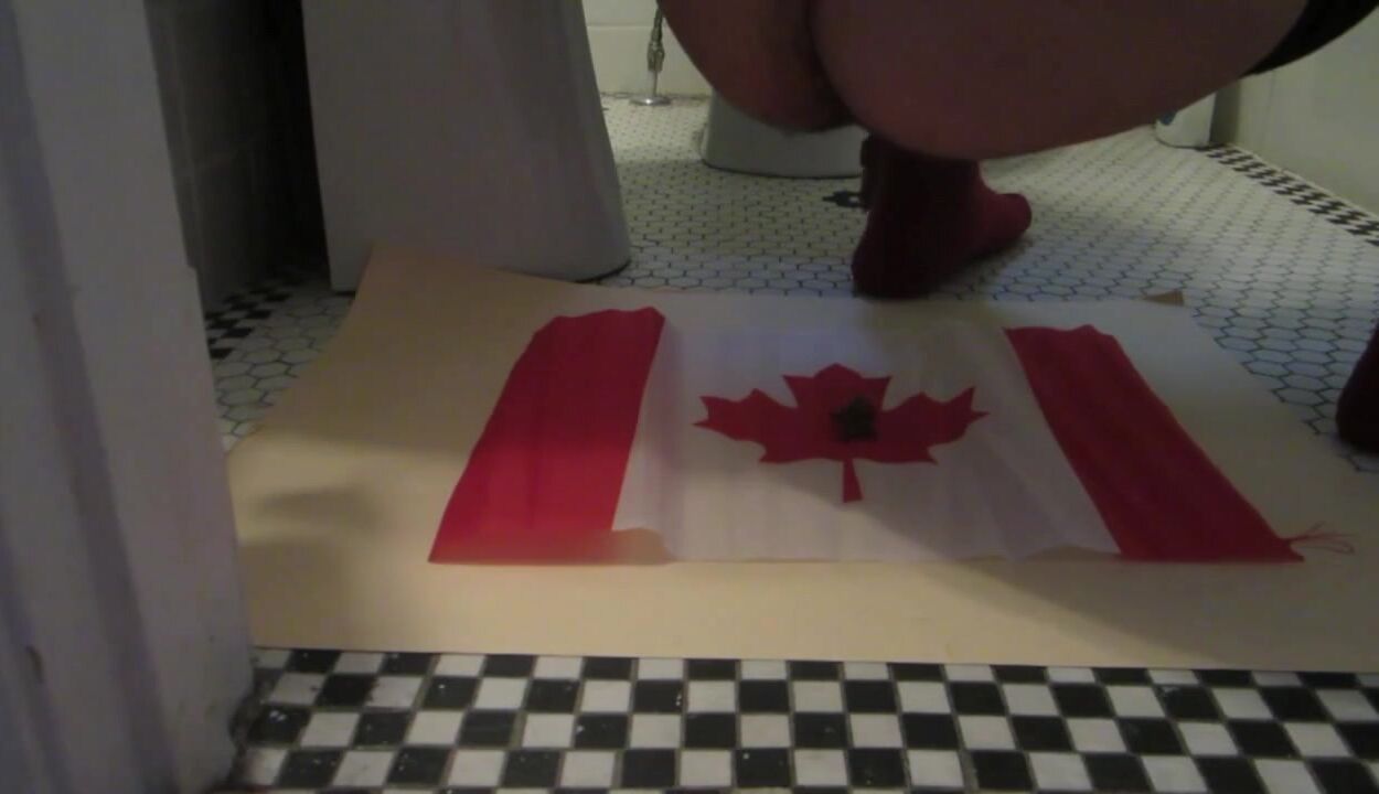 Naughty Israeli feminist, activist & artist poops on Canadian flag! :D