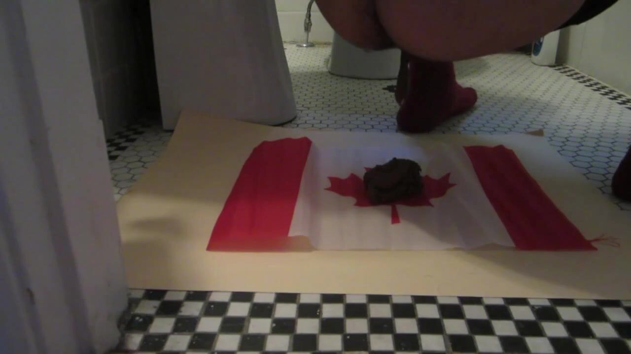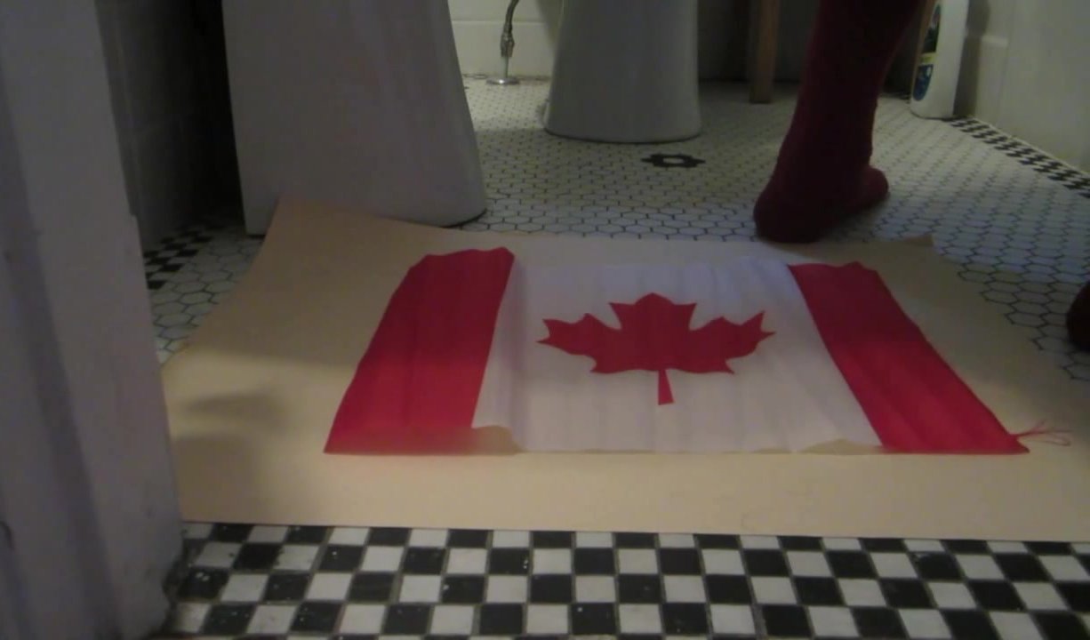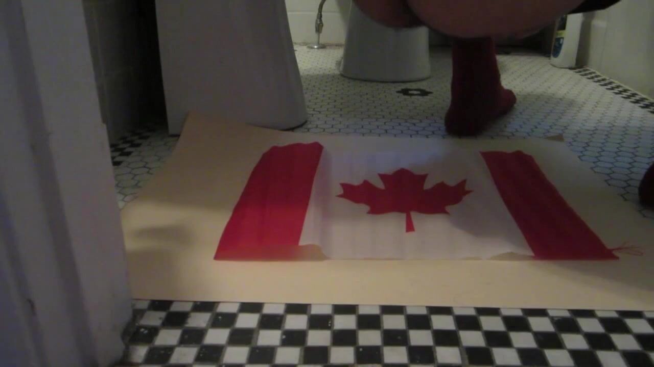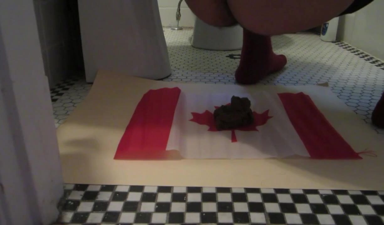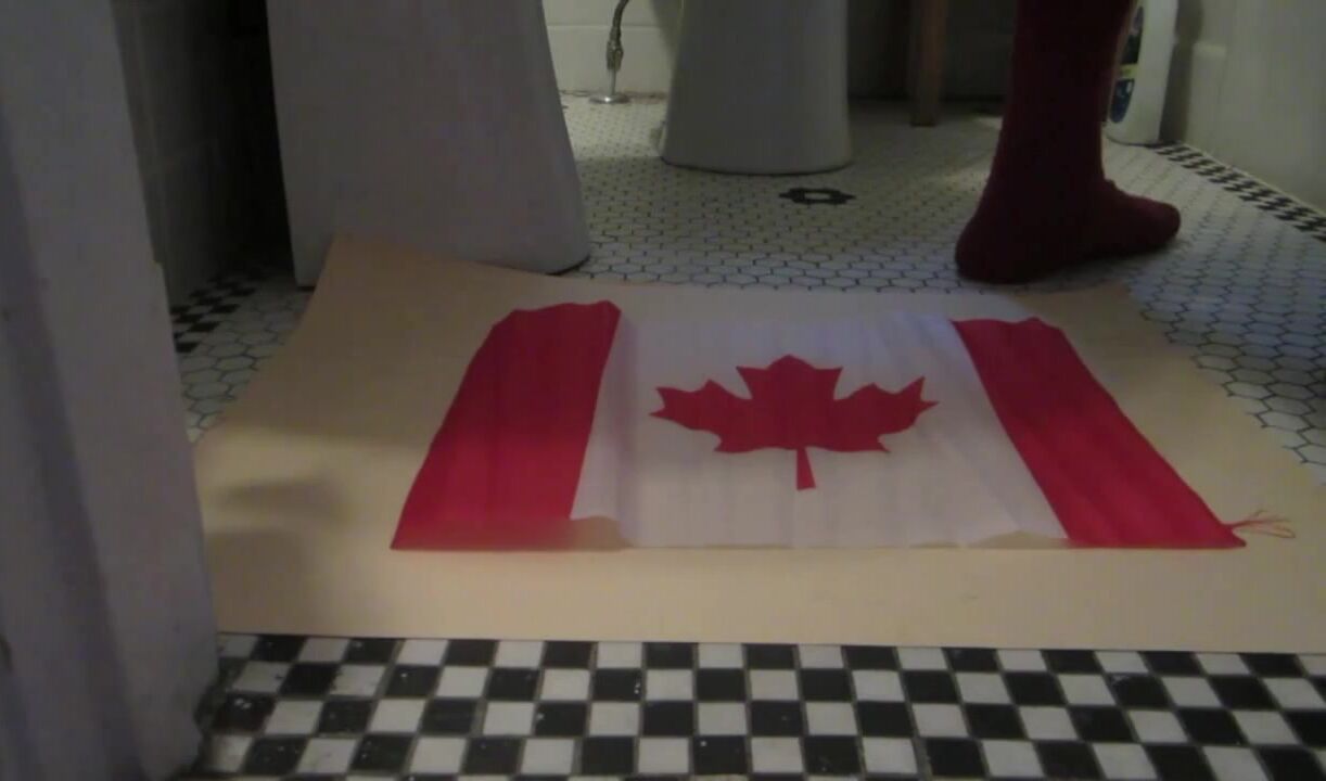 Naughty Israeli feminist, activist & artist poops on Canadian flag! :D