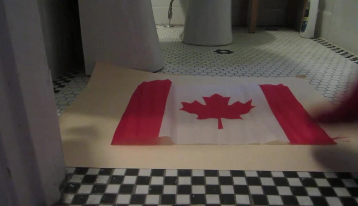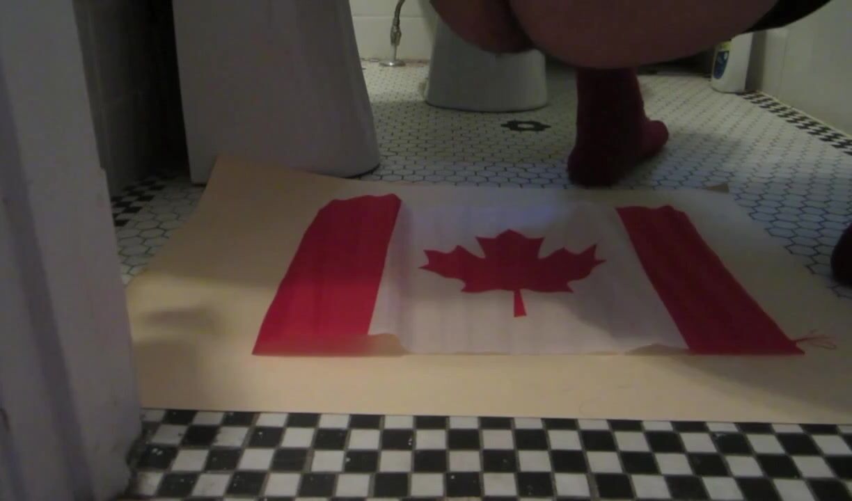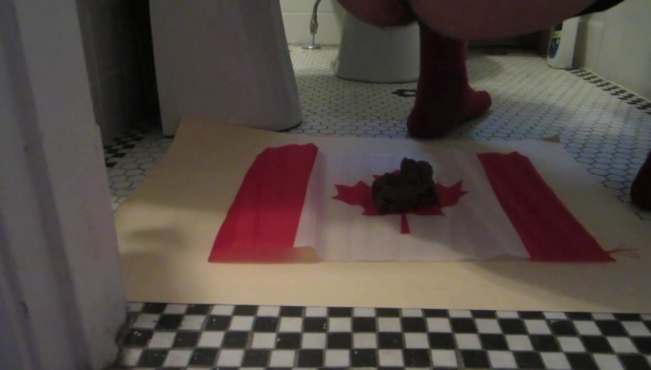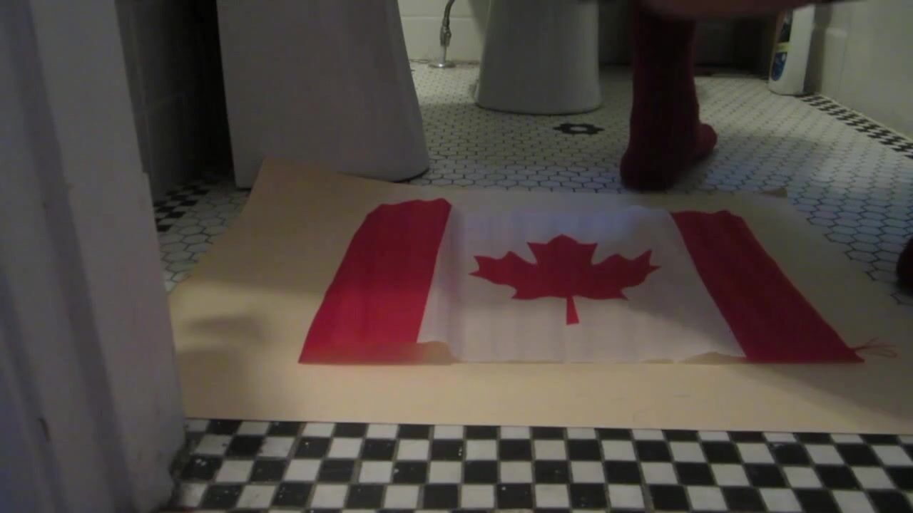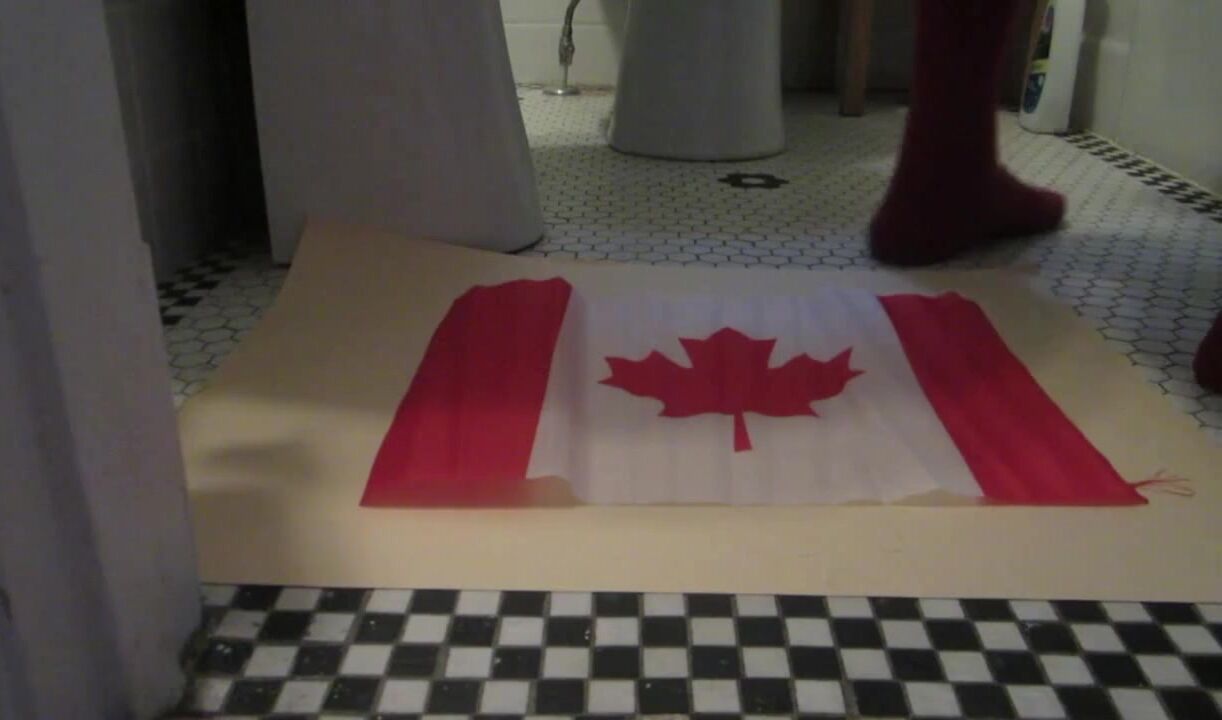 Naughty Israeli feminist, activist & artist poops on Canadian flag! :D