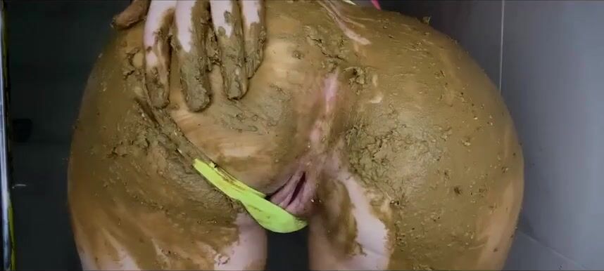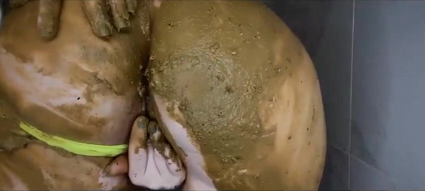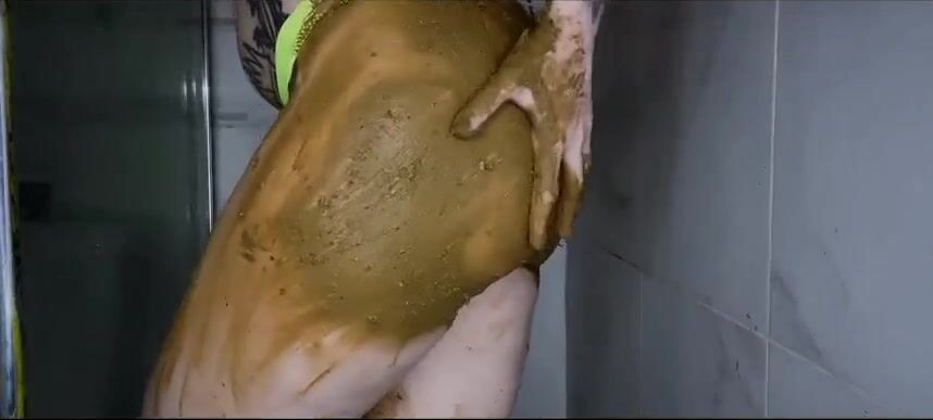 Girl shitting in the shower and smering it on body
