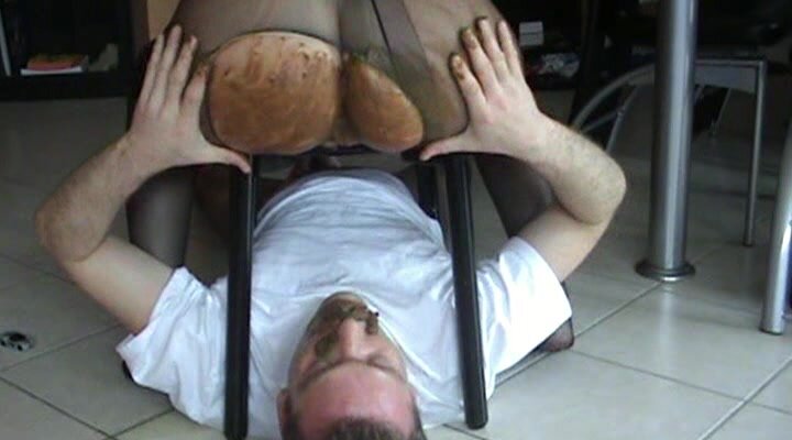 Lucky slave eating his mistress shit as breakfast