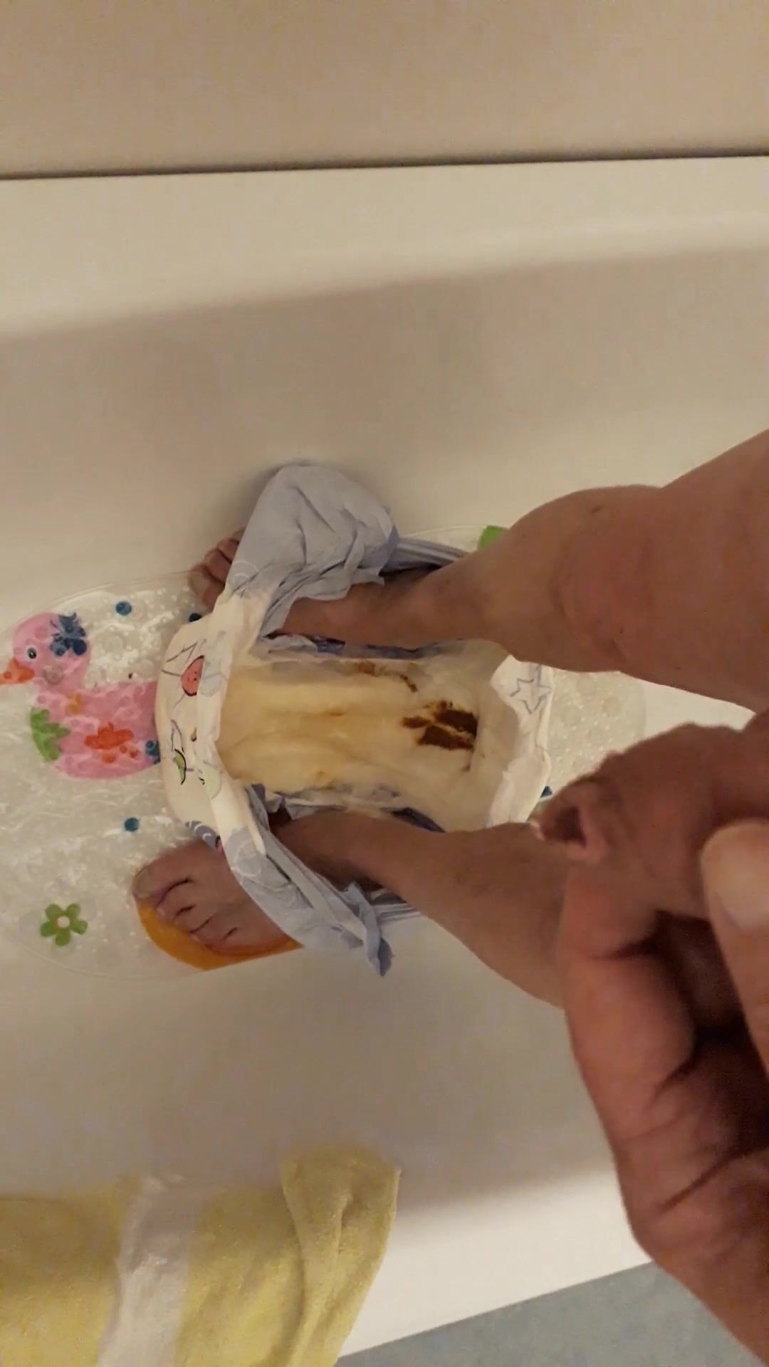 Slave daddy pees over his dirty diaper