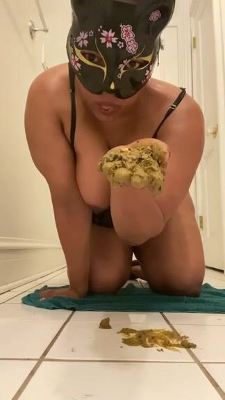 Masked blonde eating her own shit