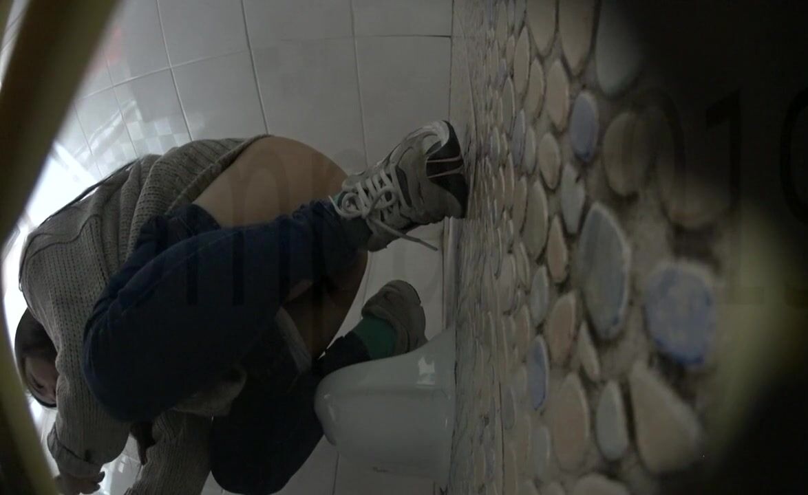 Girl open wide legs and shitting on the toilet floor