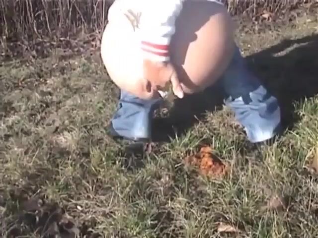 Girl took off jeans and take a shit on the meadow