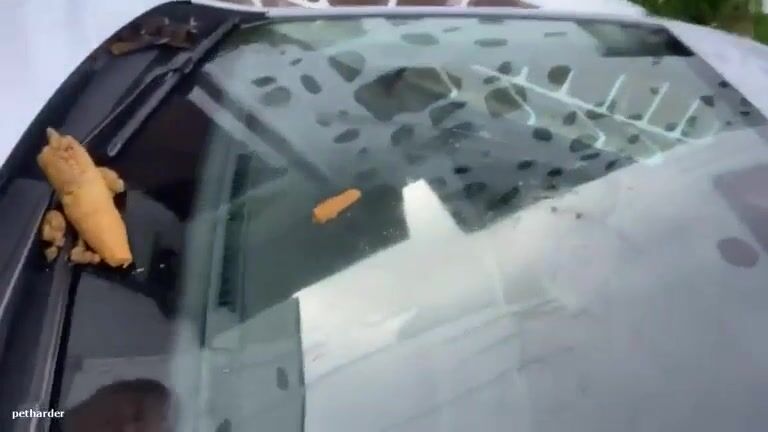 Amateur lady pooping on a car windshield