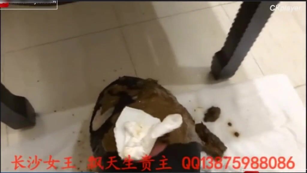 Asian girl shitting on her slave