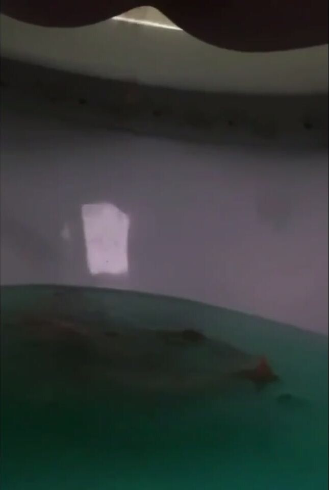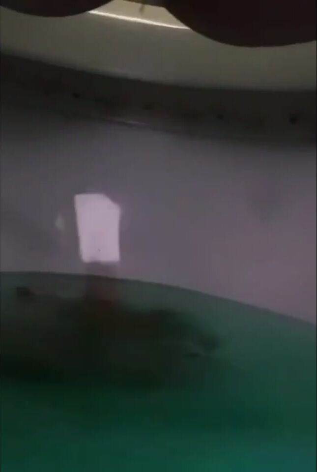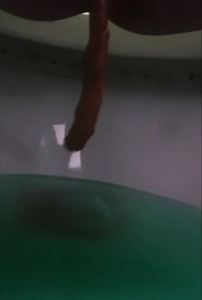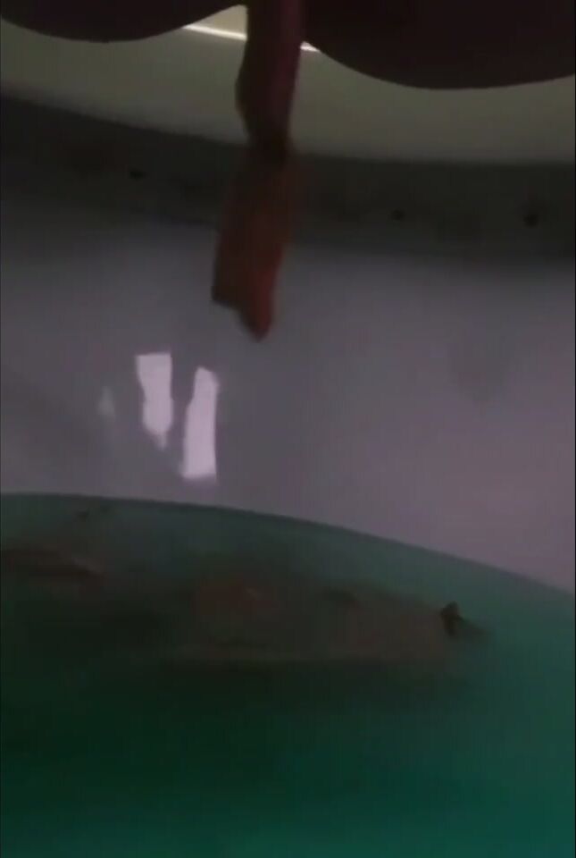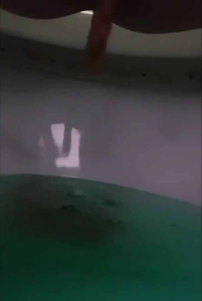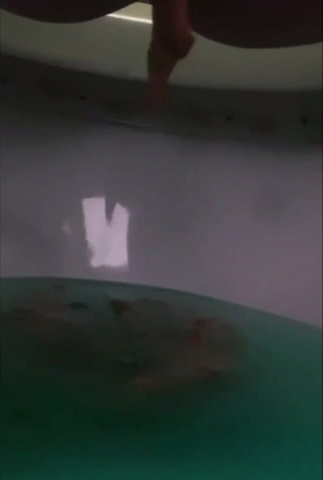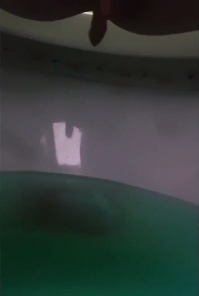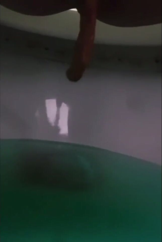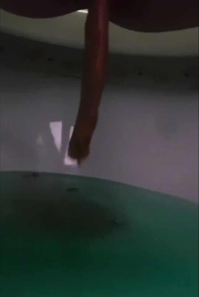 Girl open wide legs and shitting on the toilet floor