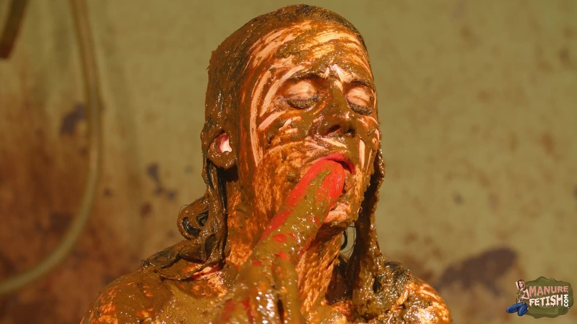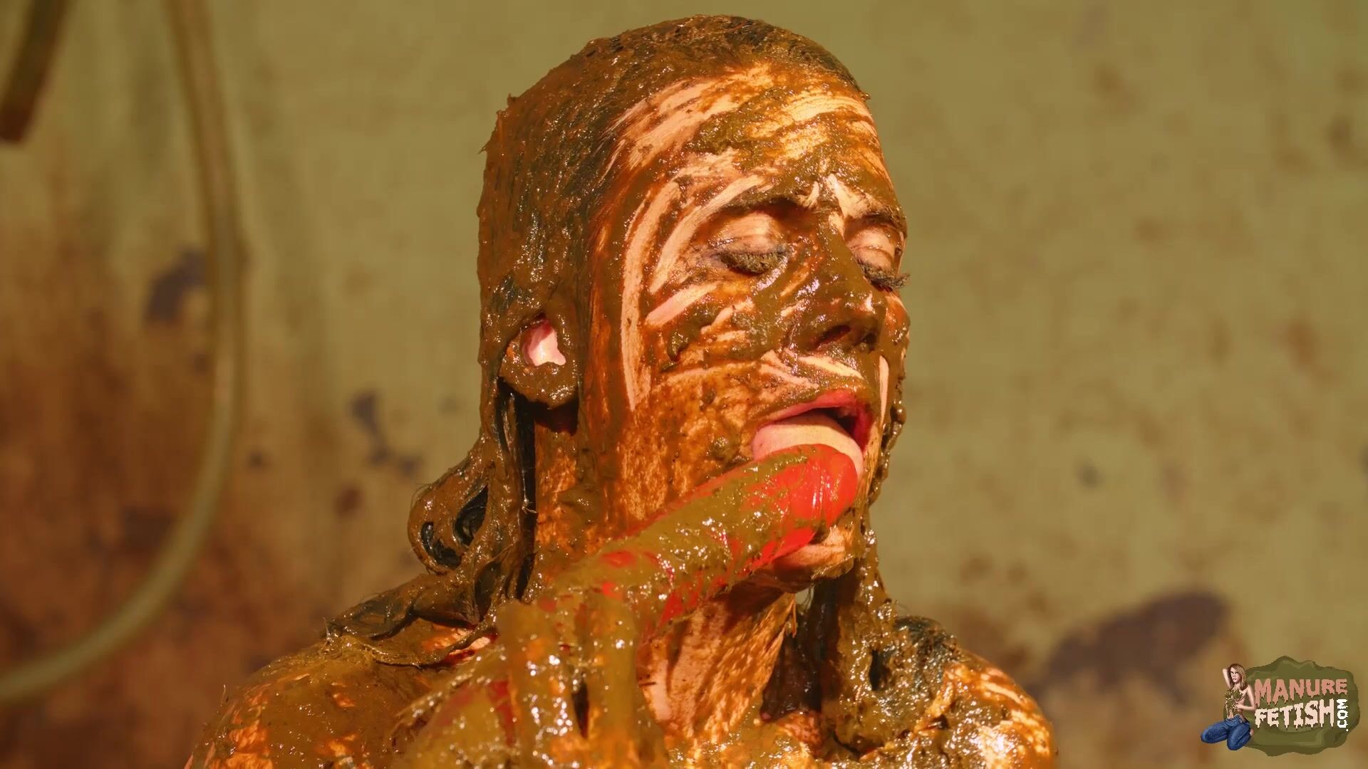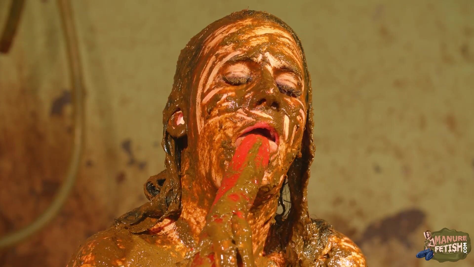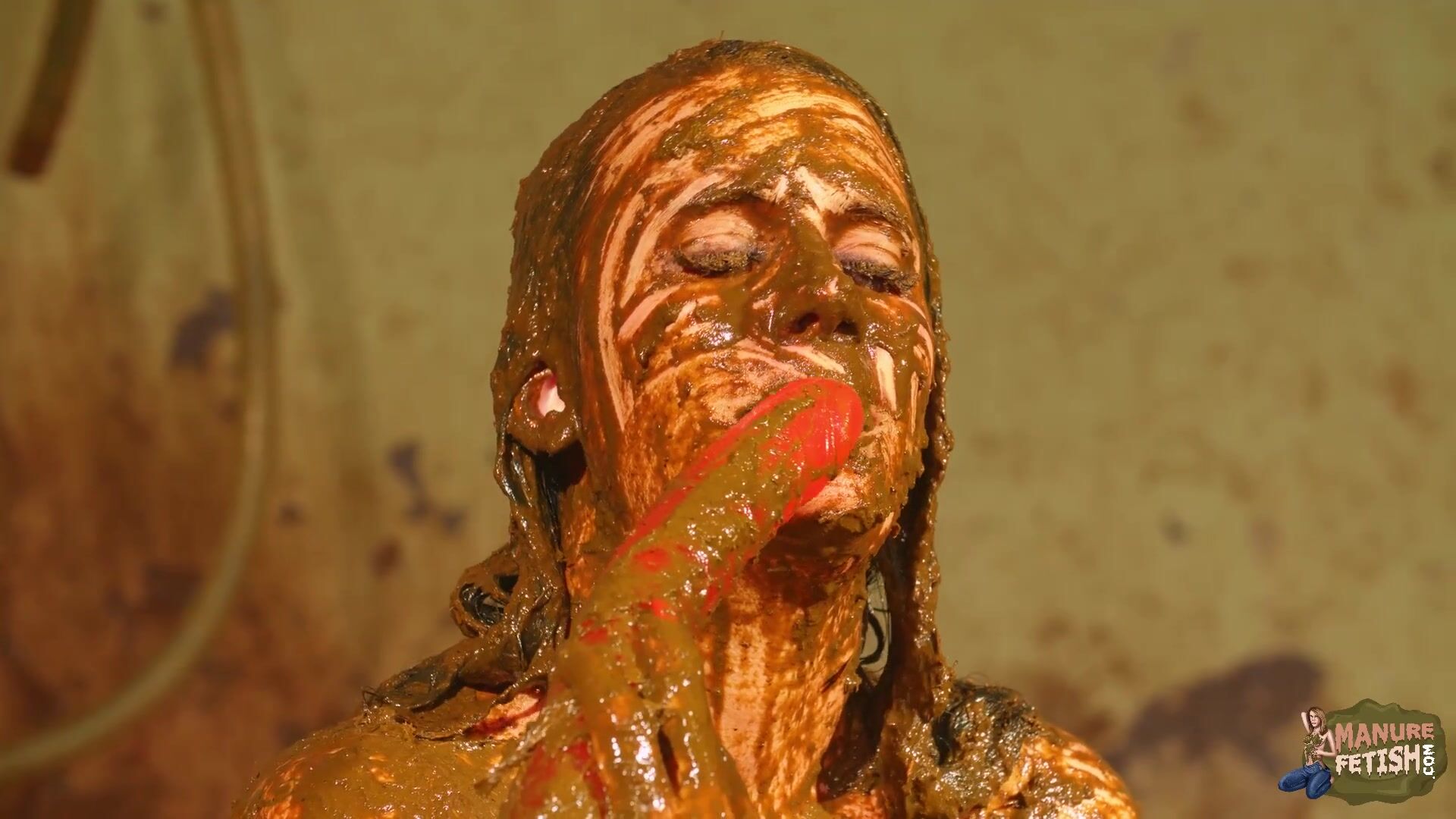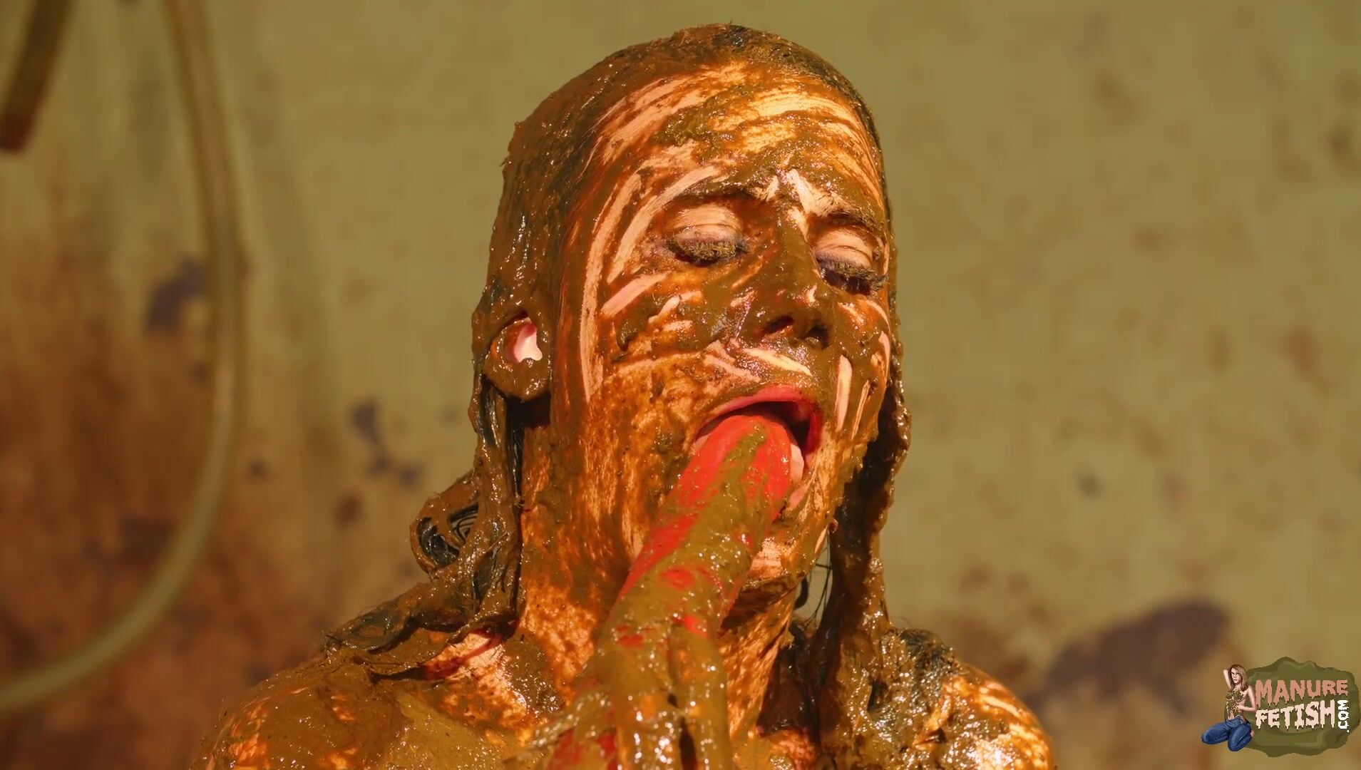 Betty licks the cowshit covered dildo