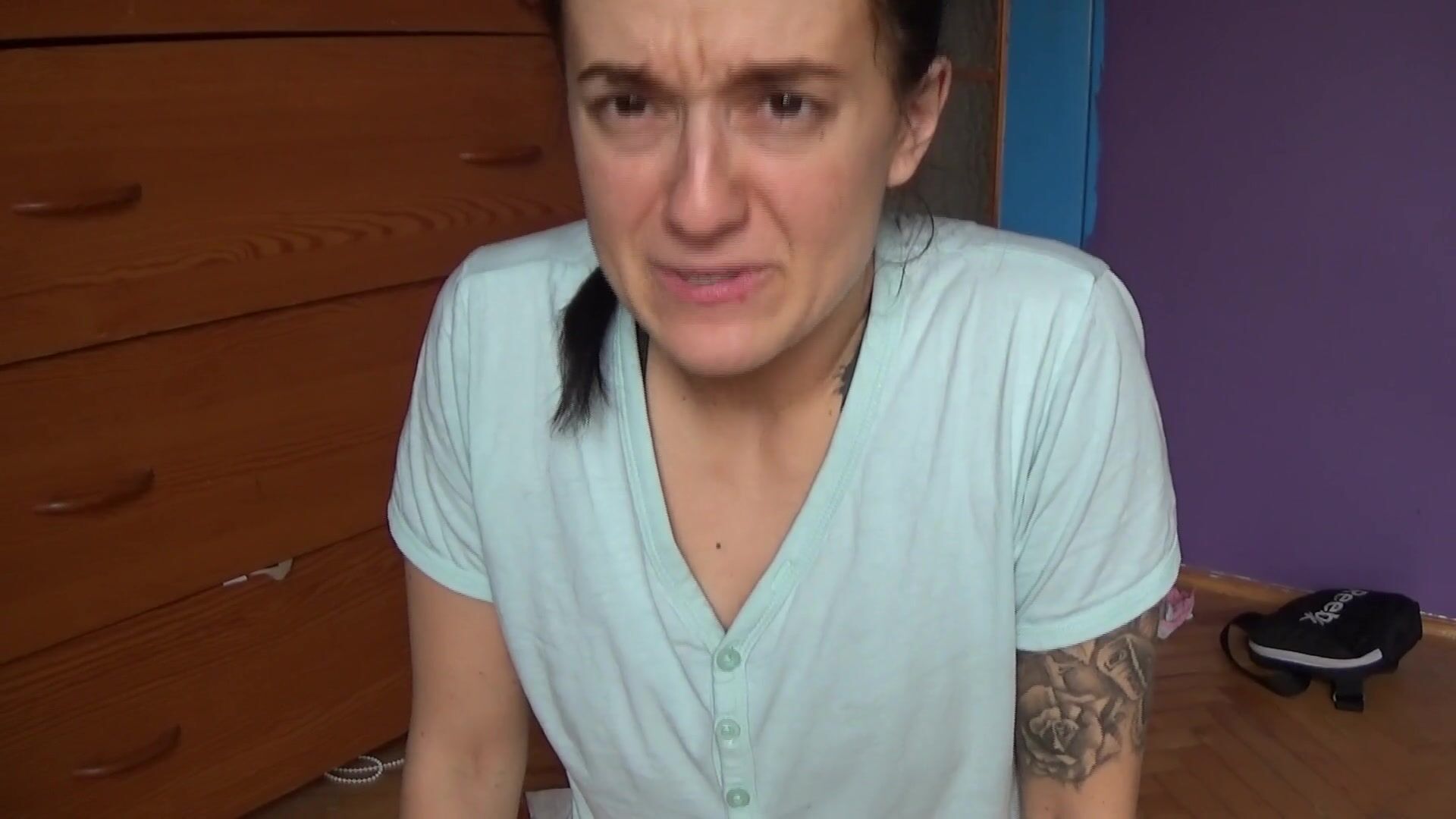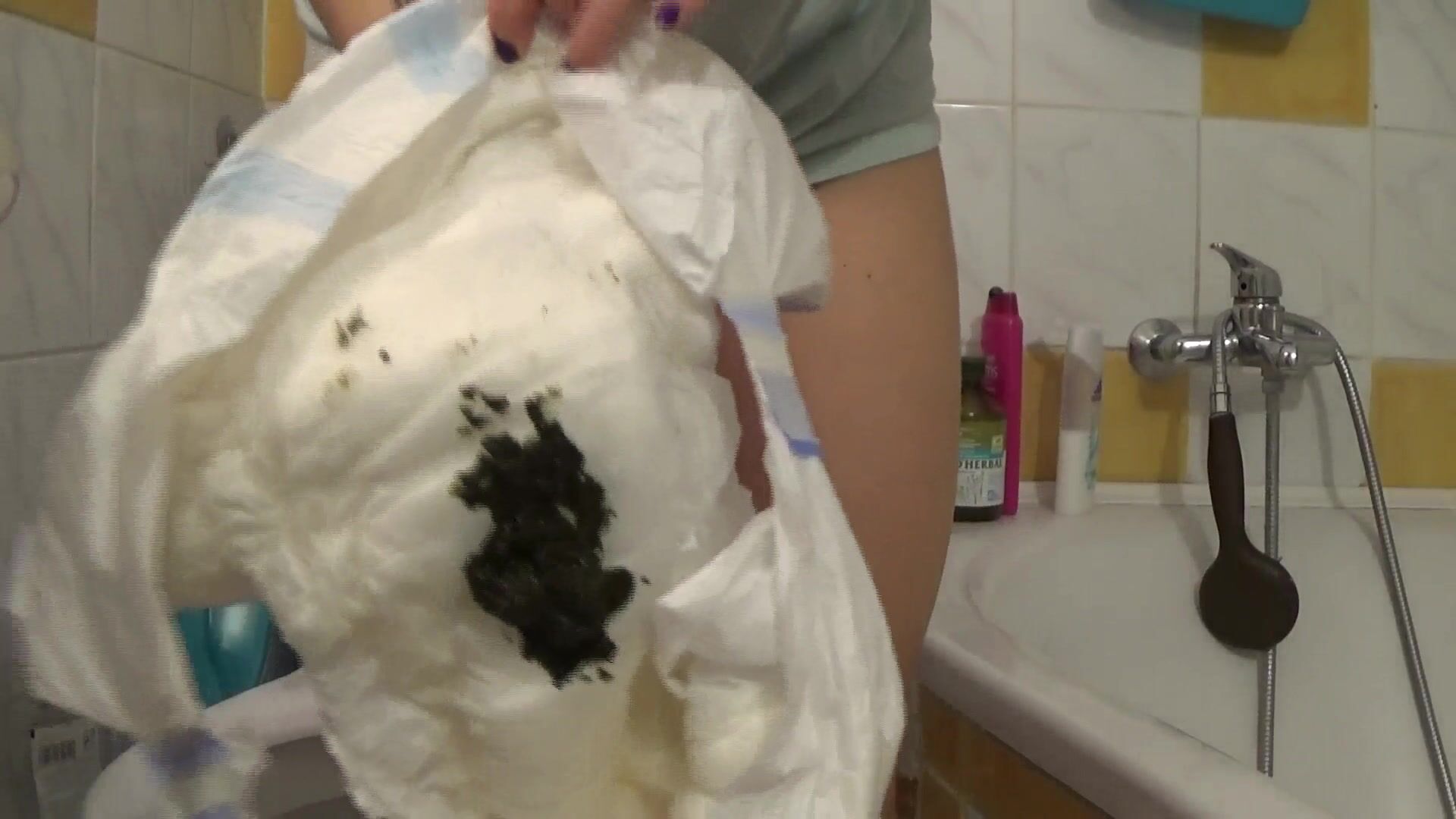 Sexy girl with tattoos messes her diaper