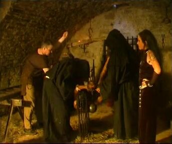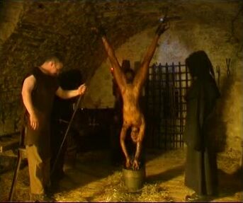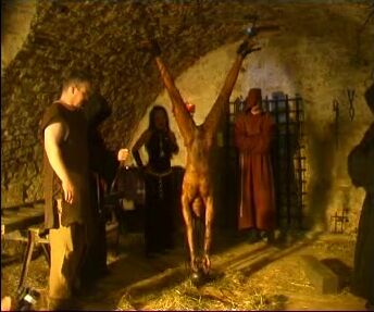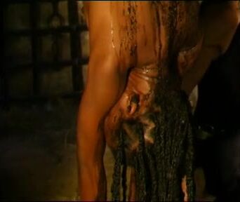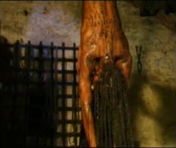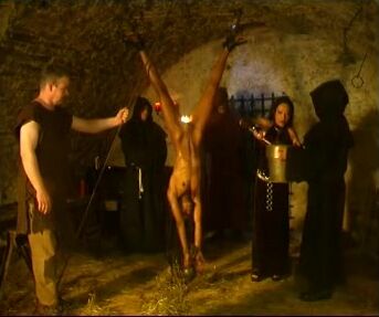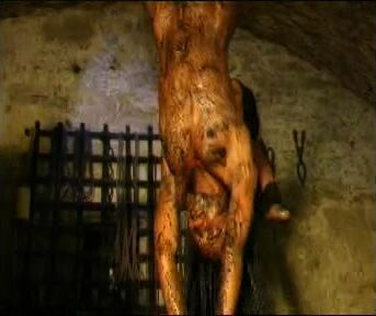 hung upside down manure dumped on her