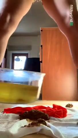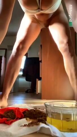 Asian girl tastes her shit