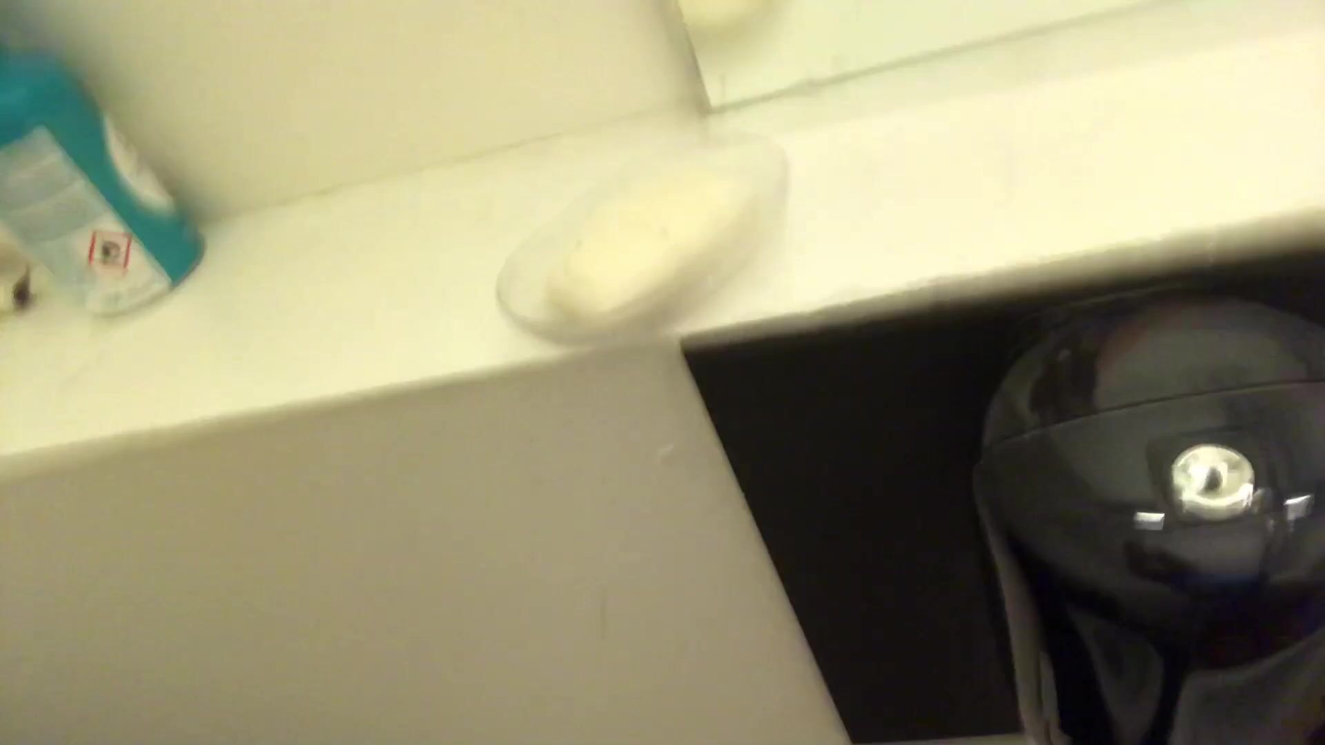 Girl open wide legs and shitting on the toilet floor