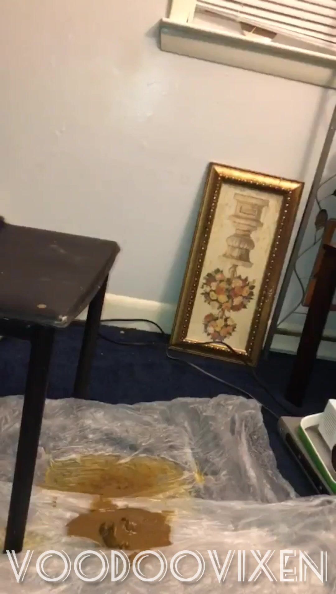 Hot thin babe shits on her floor