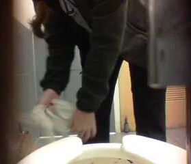 Girl open wide legs and shitting on the toilet floor