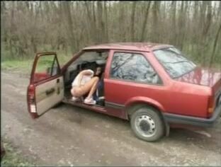 Girl pooping on the side of the road after parking her car