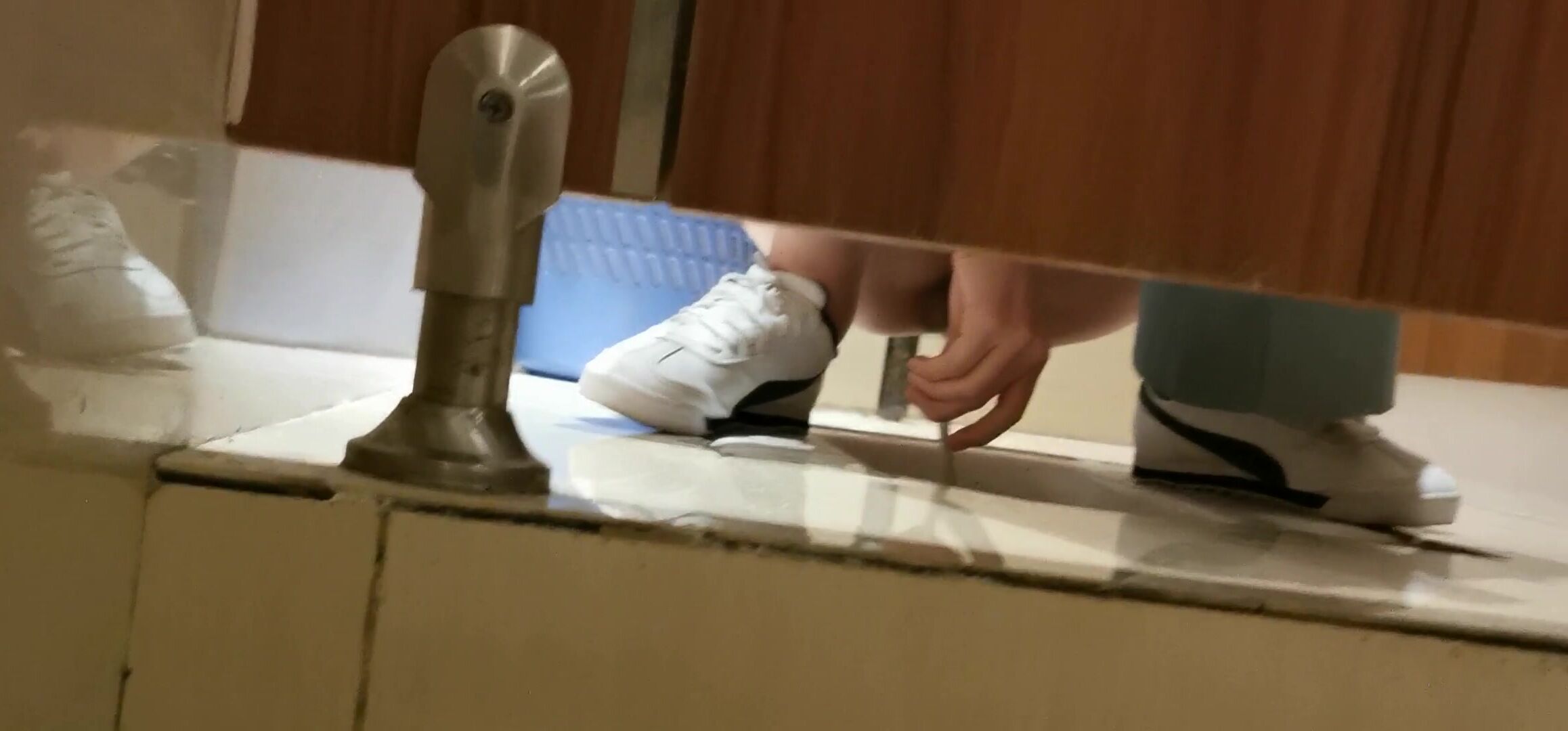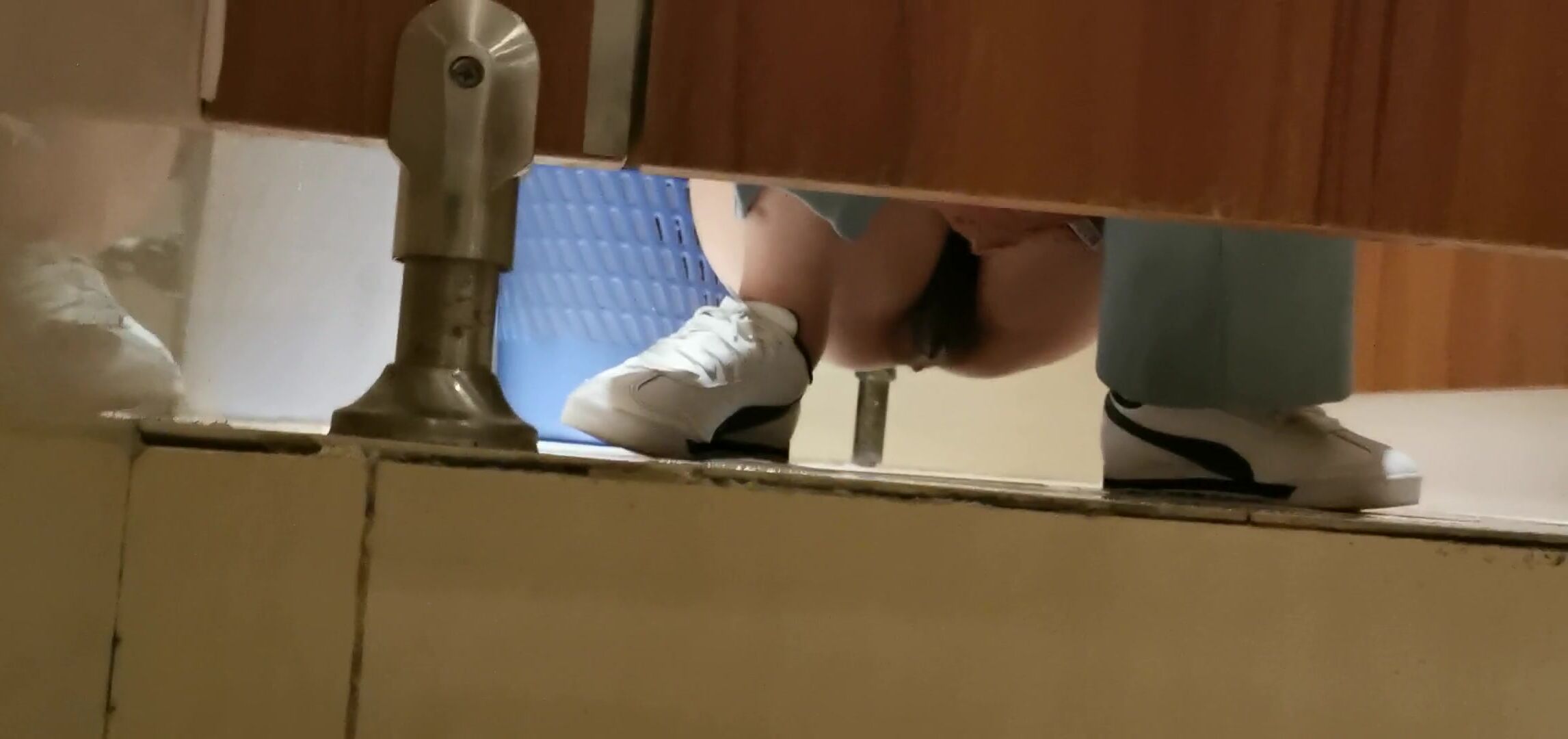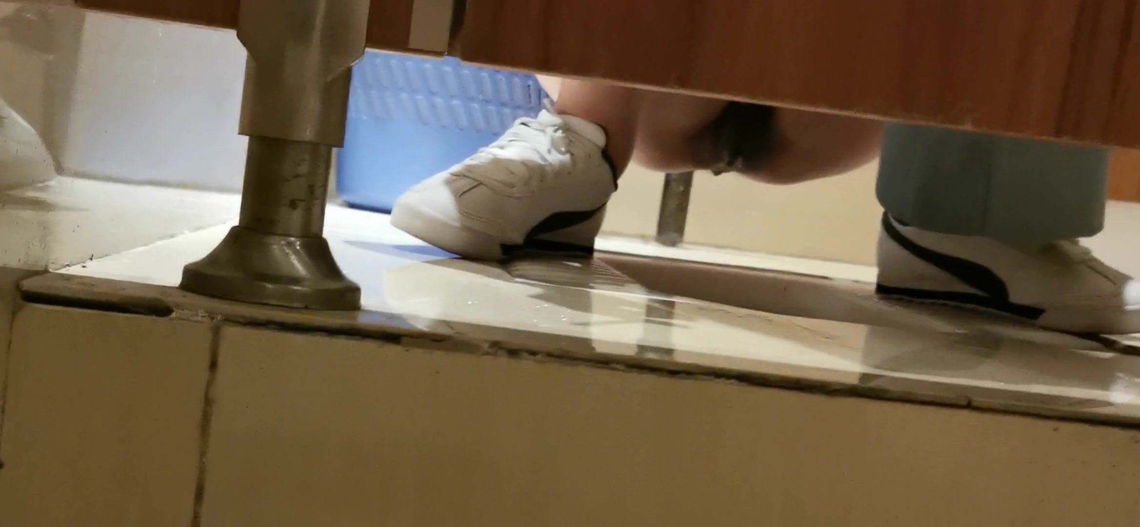 Girl open wide legs and shitting on the toilet floor