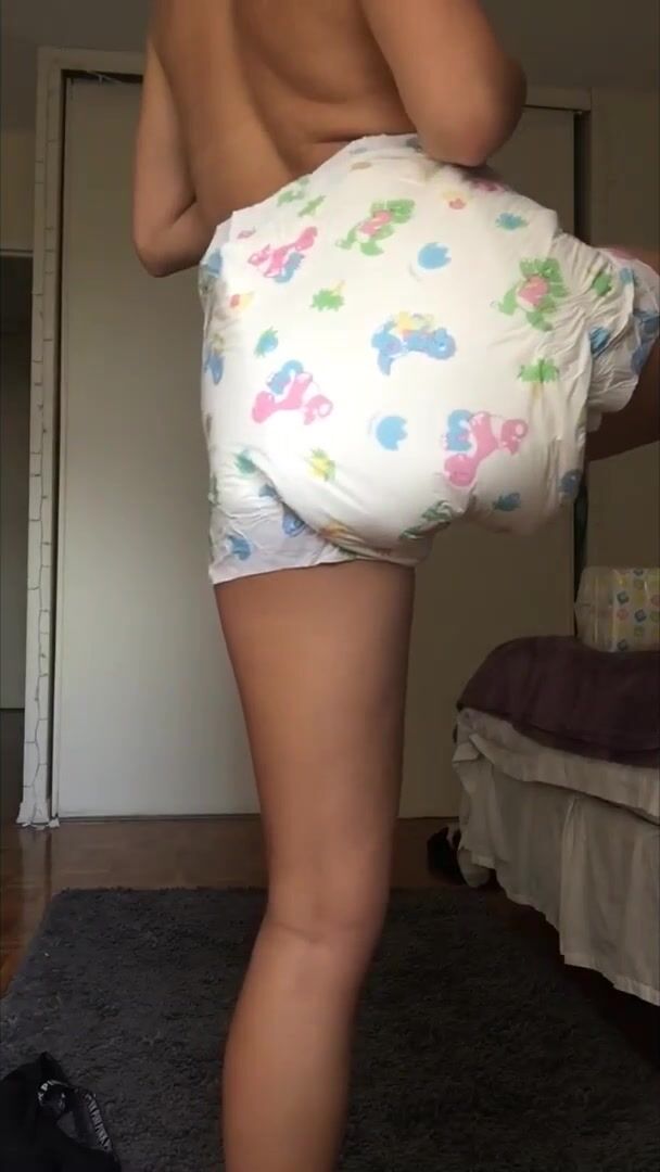 Hot blonde takes a huge shit in her diaper