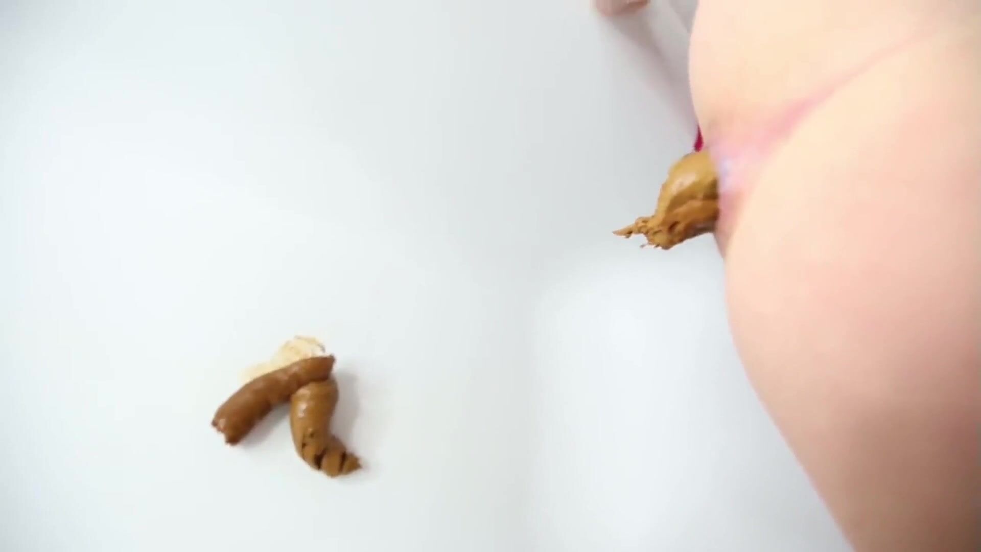 Girl open wide legs and shitting on the toilet floor